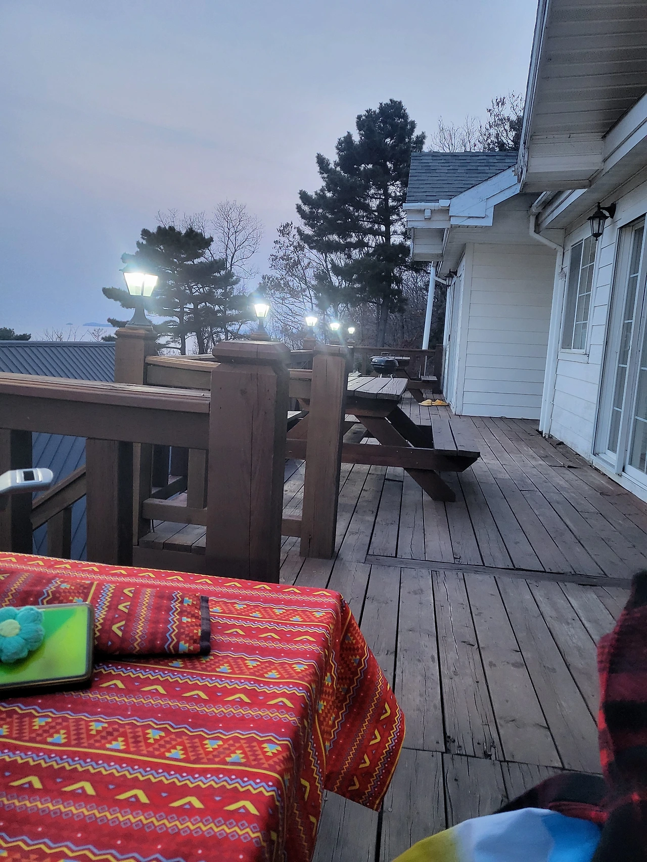 그녀가 준비한 수제비로 저녁을 끓여 먹고 난 후, 바닷가를 바라보며 조용한 시간을 보냈다.