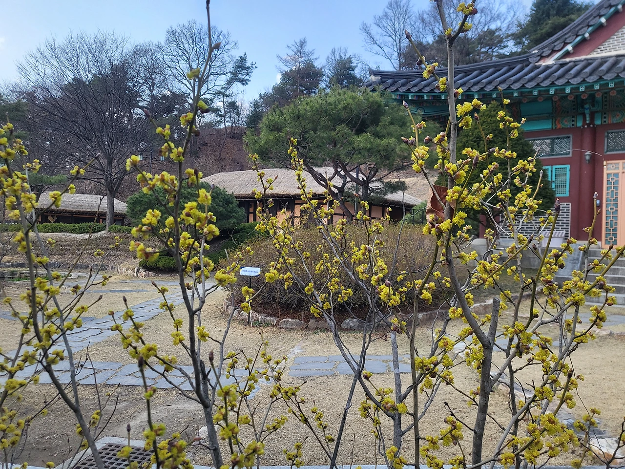 문학도서관을 따라 또다시 걸어 올라가다 보면 개나리가 노랗게 경계를 이루는 처소 책방카페가 나온다.