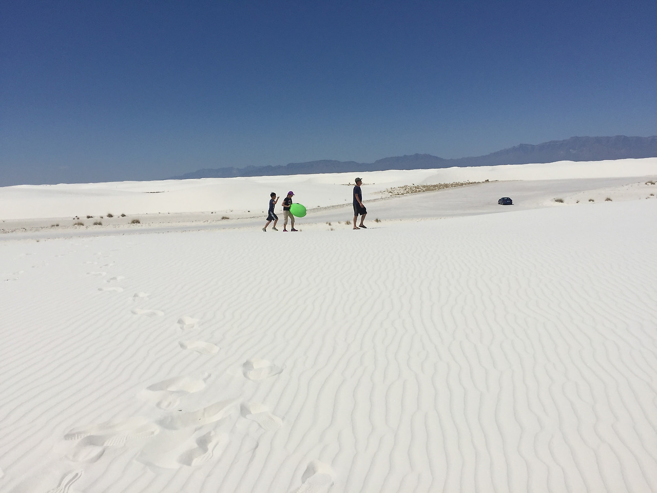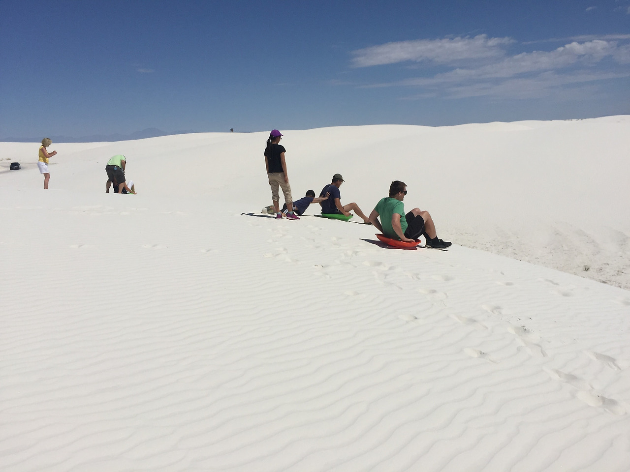 썰매도 타고 사진도 마음껏 찍고 나니 이 곳에선 더 이상 할 것이 없었다. 그냥 처음부터 끝까지 하얀 눈밭이다. 저녁이 되고 해가 질 무렵 석고 사막에 비추는 그림자 같은 작품 사진이 잘 찍히는 곳이라고 하는데 우리는 아쉽게도 그 시간까지 기다릴 수가 없어서 다음 장소인 칼스배드 동굴이 있는 곳으로 출발을 해야 했다.