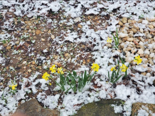 만물이 겨울잠에서 깨어나, 기지개를 켜고 살아날 준비를 하는 봄이 되면 , 거실 창을 통해서는 아직도 남아있는 겨울 끝자락의 눈 속에 작은 봉우리를 틔우고 피어나 있는 수선화가 노란 꽃봉오리를 내밀고 있다.