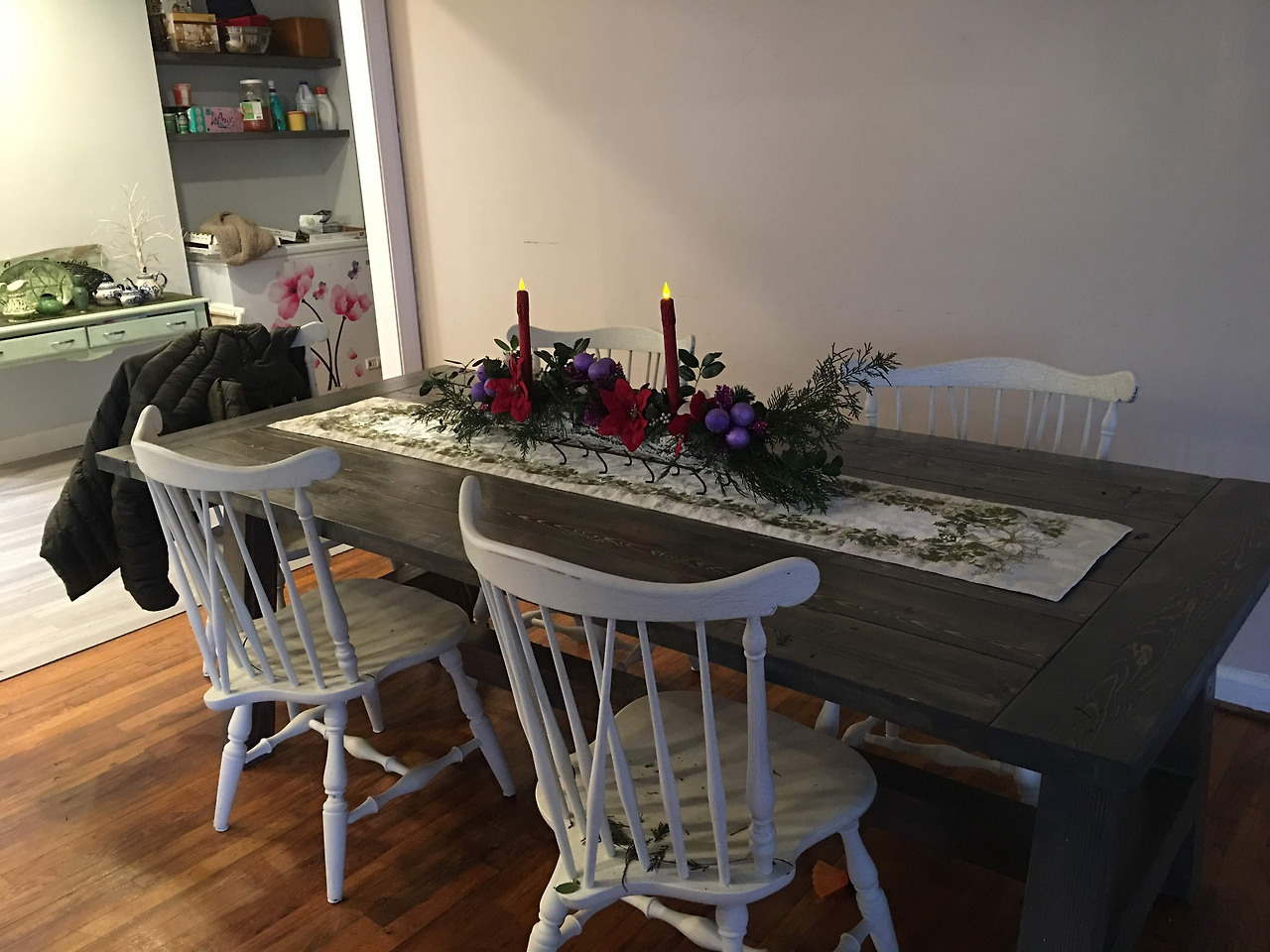 그중, 가장 마음에 들어하는 것이 남편이 만들어 놓은 식탁이었다. 그도 그럴 것이 시중에 나가면 천 달러가 족히 넘어 들을 원목가구를 남편과 나의 발품과 노동으로 만들어 낸 것이다. 결과는 대만족이었다.