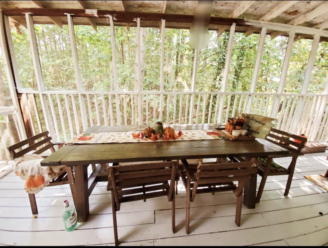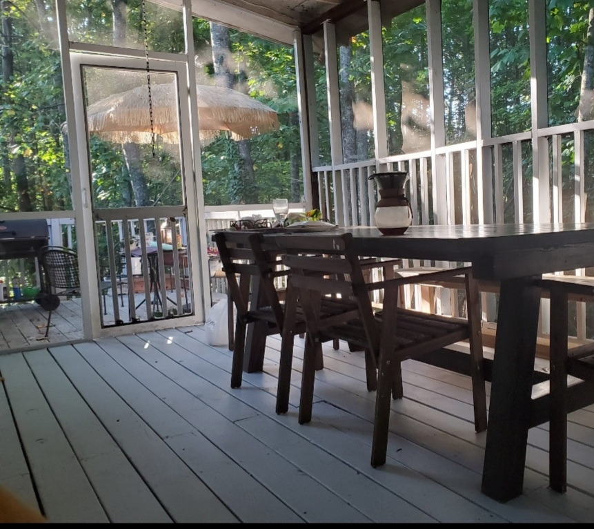 남편은 덱과 연결되어 있는 곳에 문과 스크린을 설치하여 비가 들어오지 못하게 완벽하게 데크와 분리시켜 독립된 공간으로 만들어 주었다. 원래 있던 공간은 너무 위험한 거 같아서 나무를 덧대서 다시 썬룸 주변을 나무로 다시 촘촘하게 둘러 주었다. 훨씬 안전하고 보기에도 한결 깔끔하다.