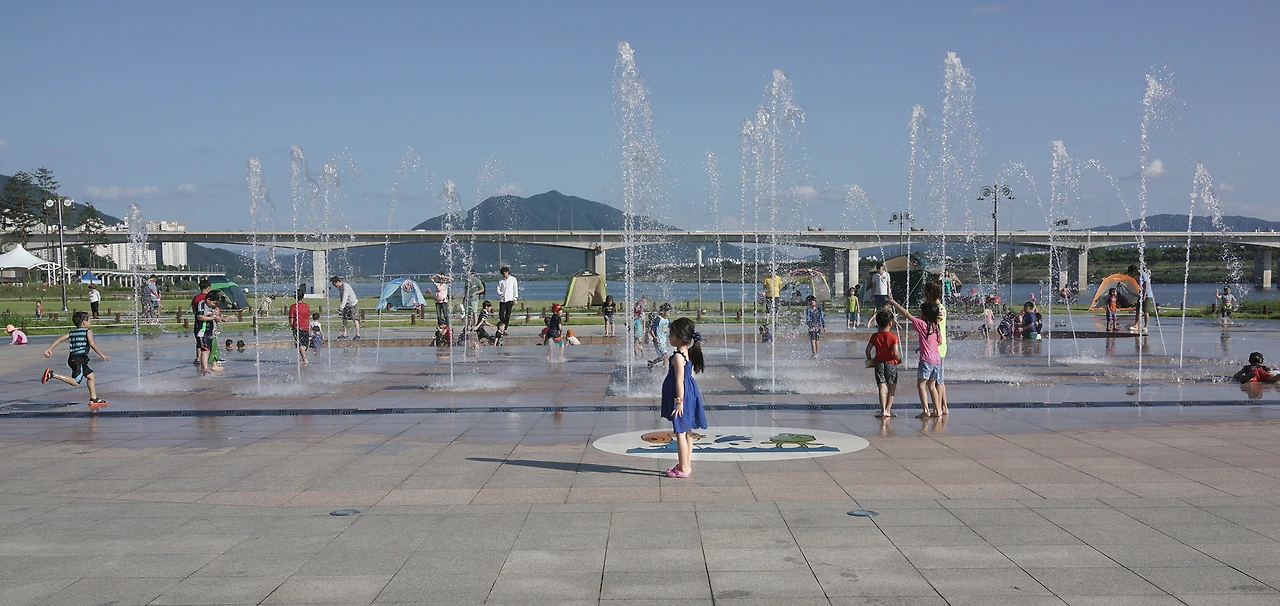 다음날, 물놀이를 다시 하고 싶어 수영복에 구명조끼까지 만반의 준비로 왔으나 이 분수가 아니라고.