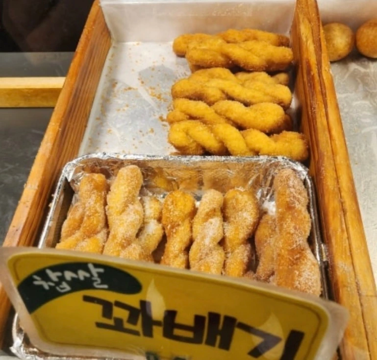 한국 여행길에서도 비슷한 순간을 만났다. 시장 골목 모퉁이, 노란 불빛이 새어 나오는 작은 빵집. 기름 튀기는 소리와 상인들의 웃음소리가 뒤섞인 그곳에서, 갓 튀겨낸 꽈배기가 산처럼 쌓여 있었다.