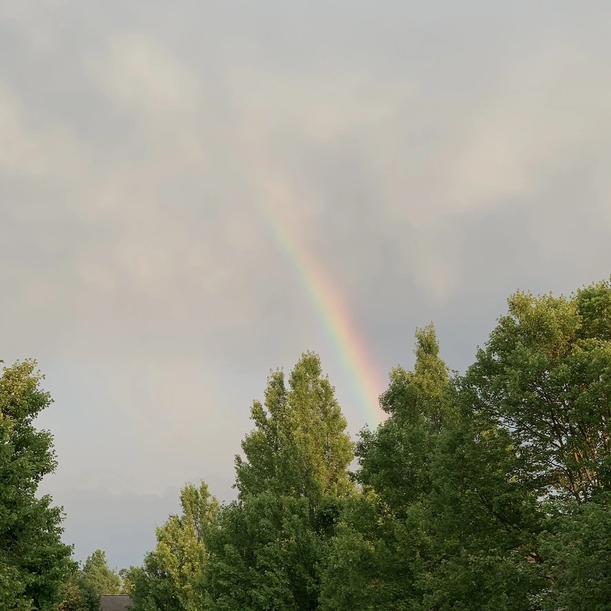 무지개가 걸린 저녁 산책길, 네 식구의 발걸음에 희망이 함께한다.