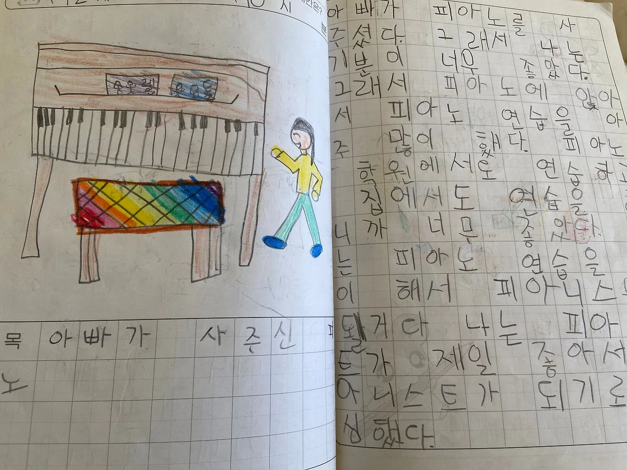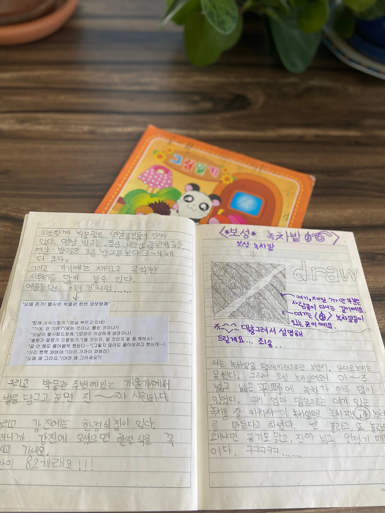 삐뚤빼뚤한 글씨의 일기장, 크레파스로 칠한 그림일기,
