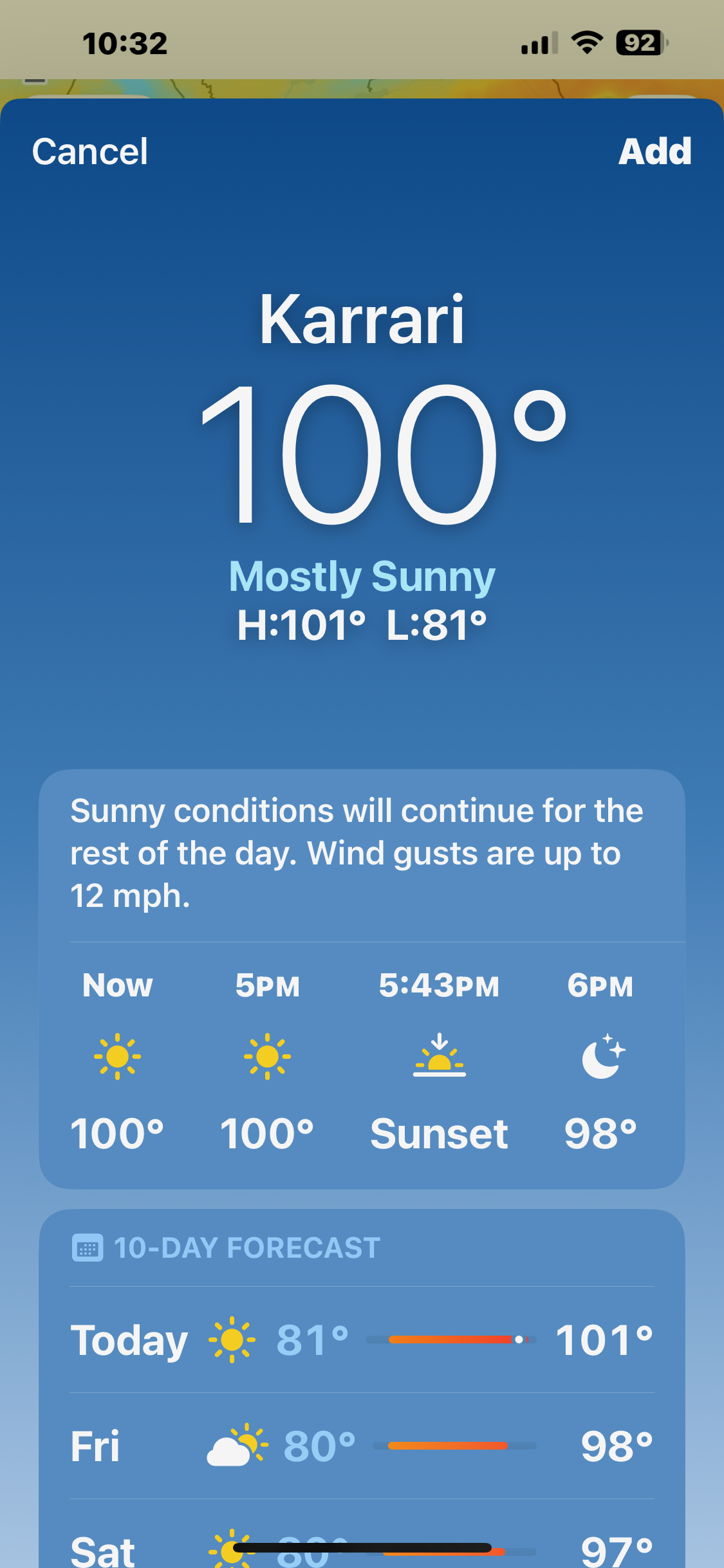 "오늘 기온은 100°F를 넘을 전망입니다."