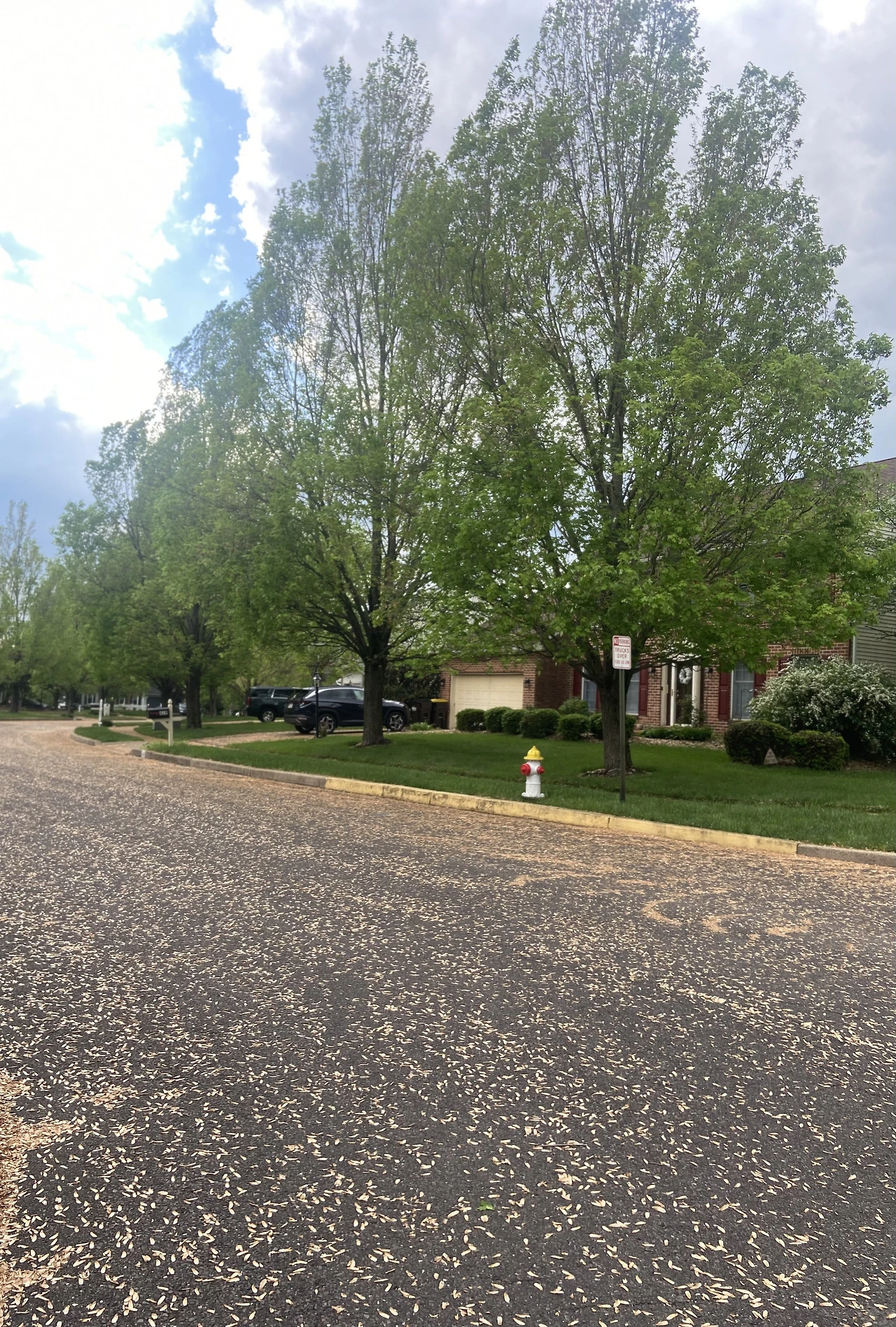 봄바람 타고 동네 도로 위에 떨어진 씨앗들.