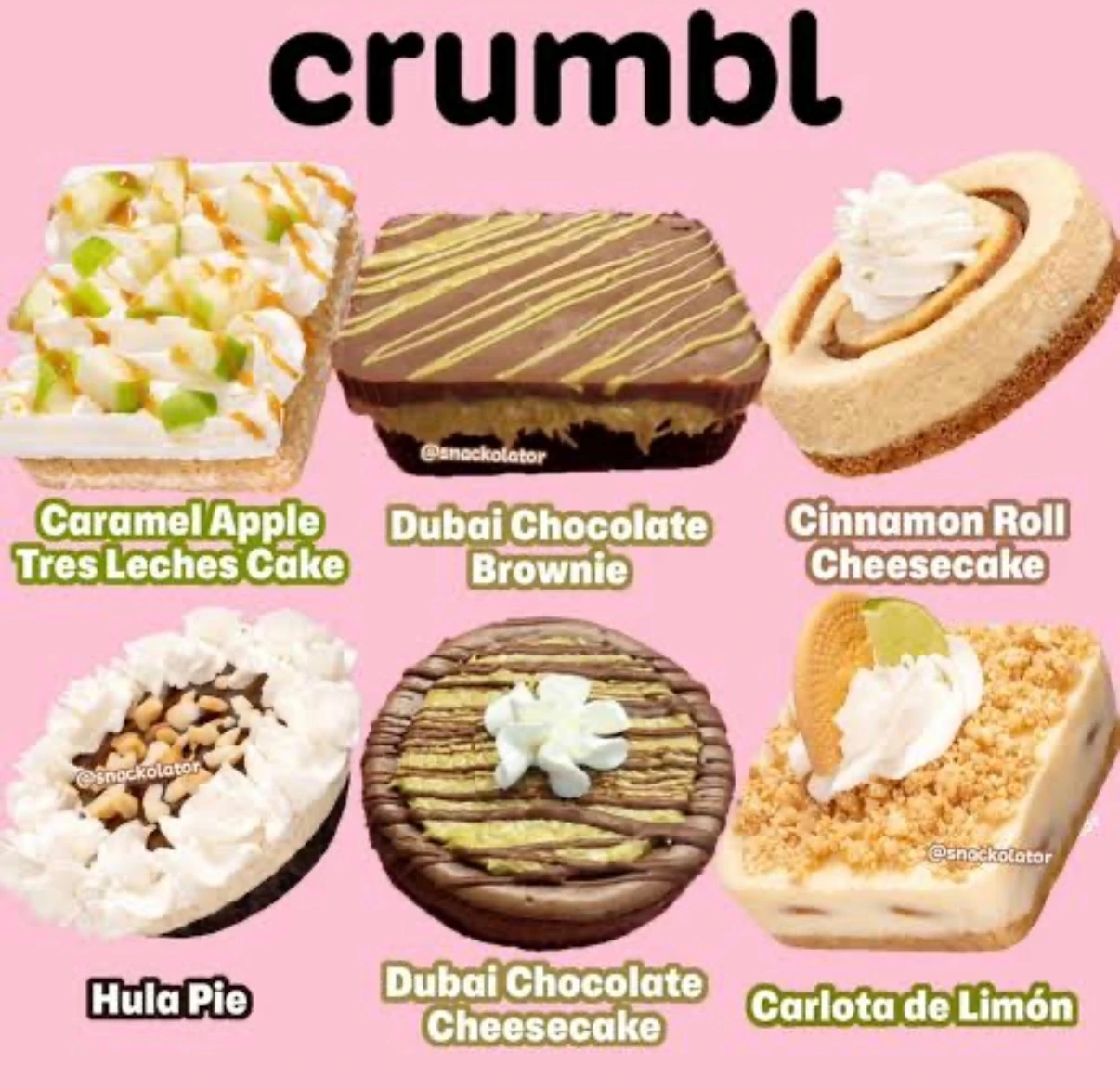 Crumbl에서는 두바이 초콜릿이 다양하게 선보인다.