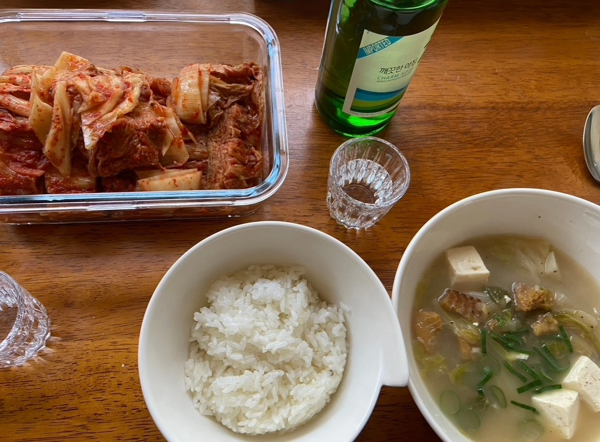 다음 날 아침, 남편은 벌써 국물을 찾고 있다. 다행히 전에 얼려둔 콩나물국이 있어 얼른 해동시킨다. 미국에 살지만, 우리 부엌은 극히 한국인. 해장도 한국 스타일이다.
