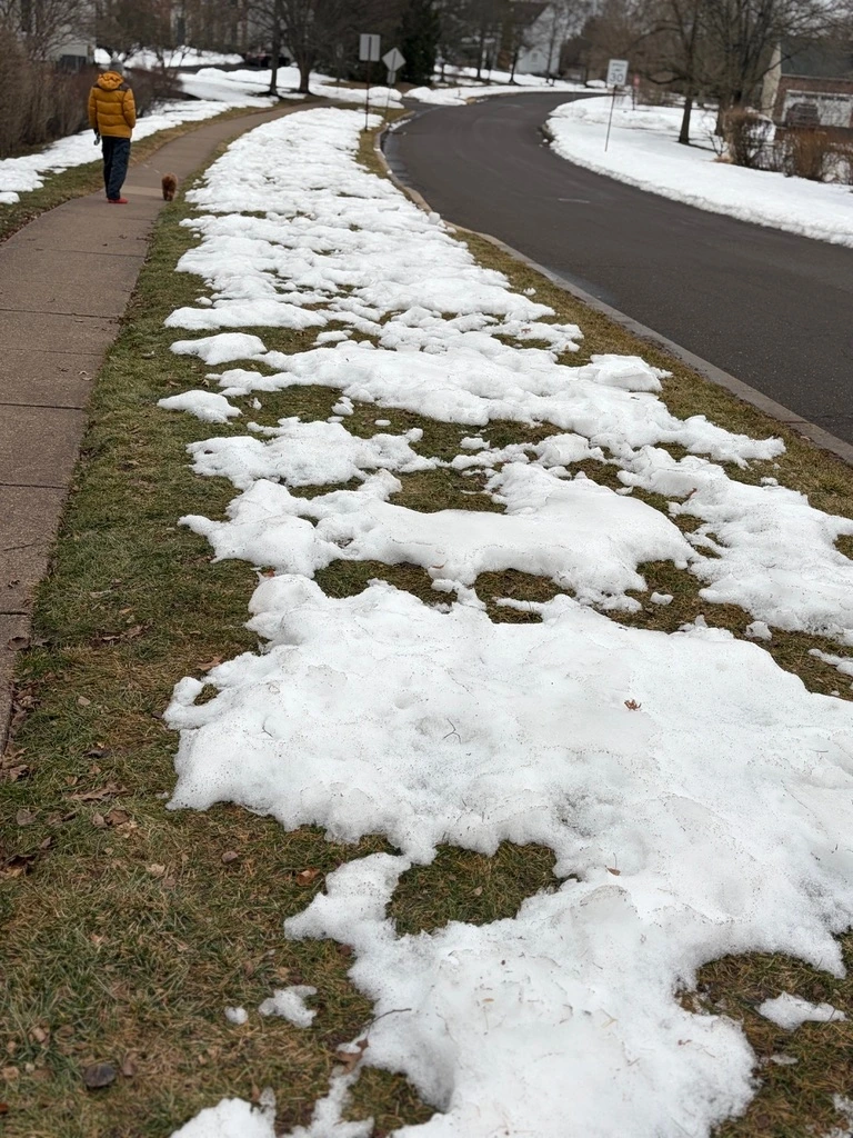 오늘 산책을 하다가 그 앞에서 멈췄다. 눈이 녹고 있었다. 줄어드는 느낌이 아니라 퍼지는 느낌이었다. 무너지기보다 경계가 풀리고 있었고, 잔디 위에 떠 있는 모양은 하늘의 구름을 닮아 있었다.