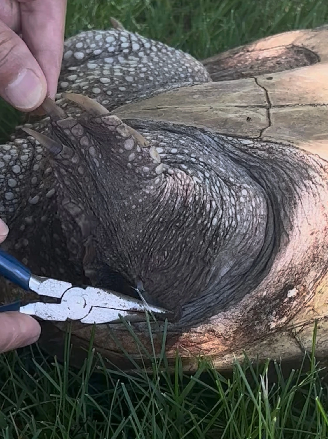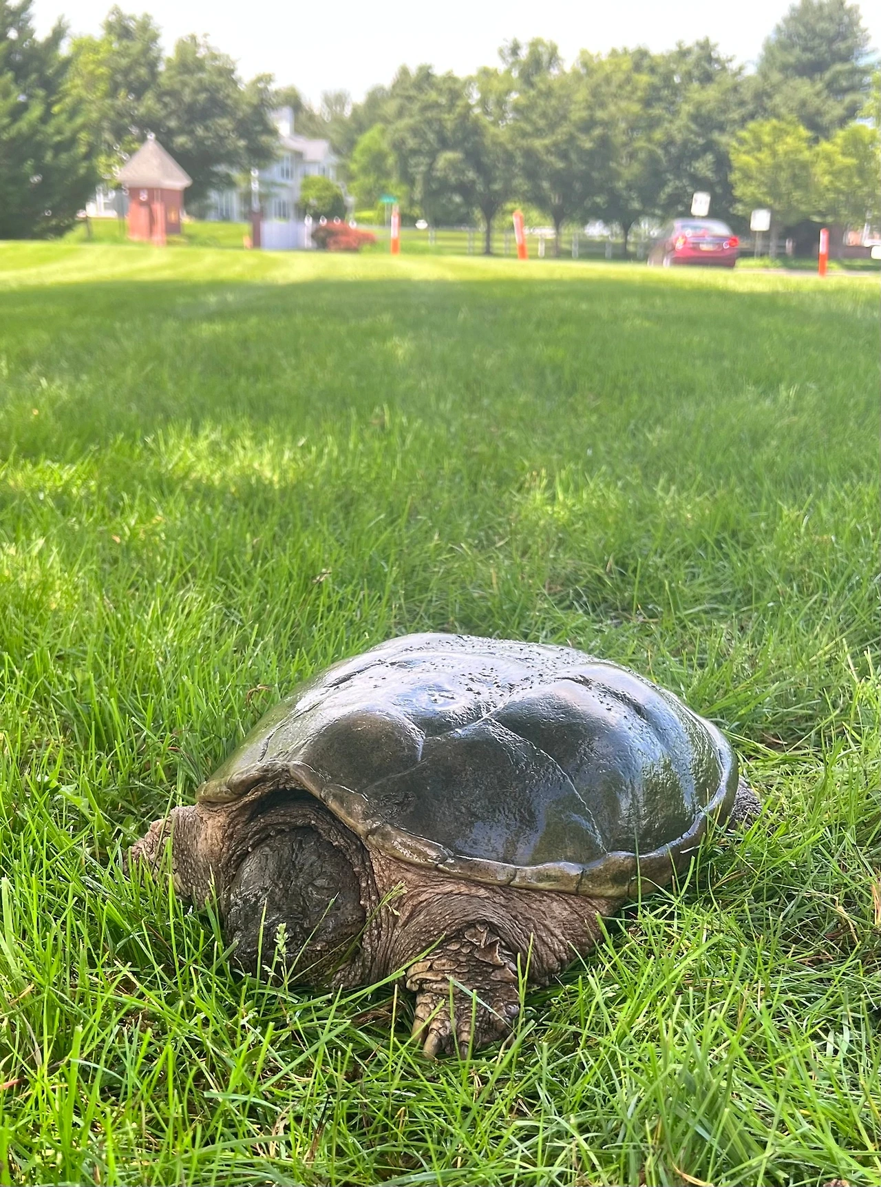 보니, 늑대 거북이(Snapping Turtle) 한 마리가 우리 집 앞 잔디까지 기어들어 온 것.