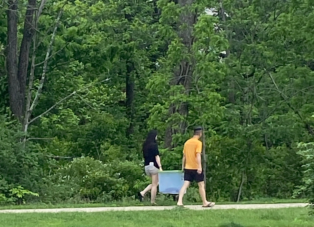 "이 친구, 근처 개울에 데려다 주자."