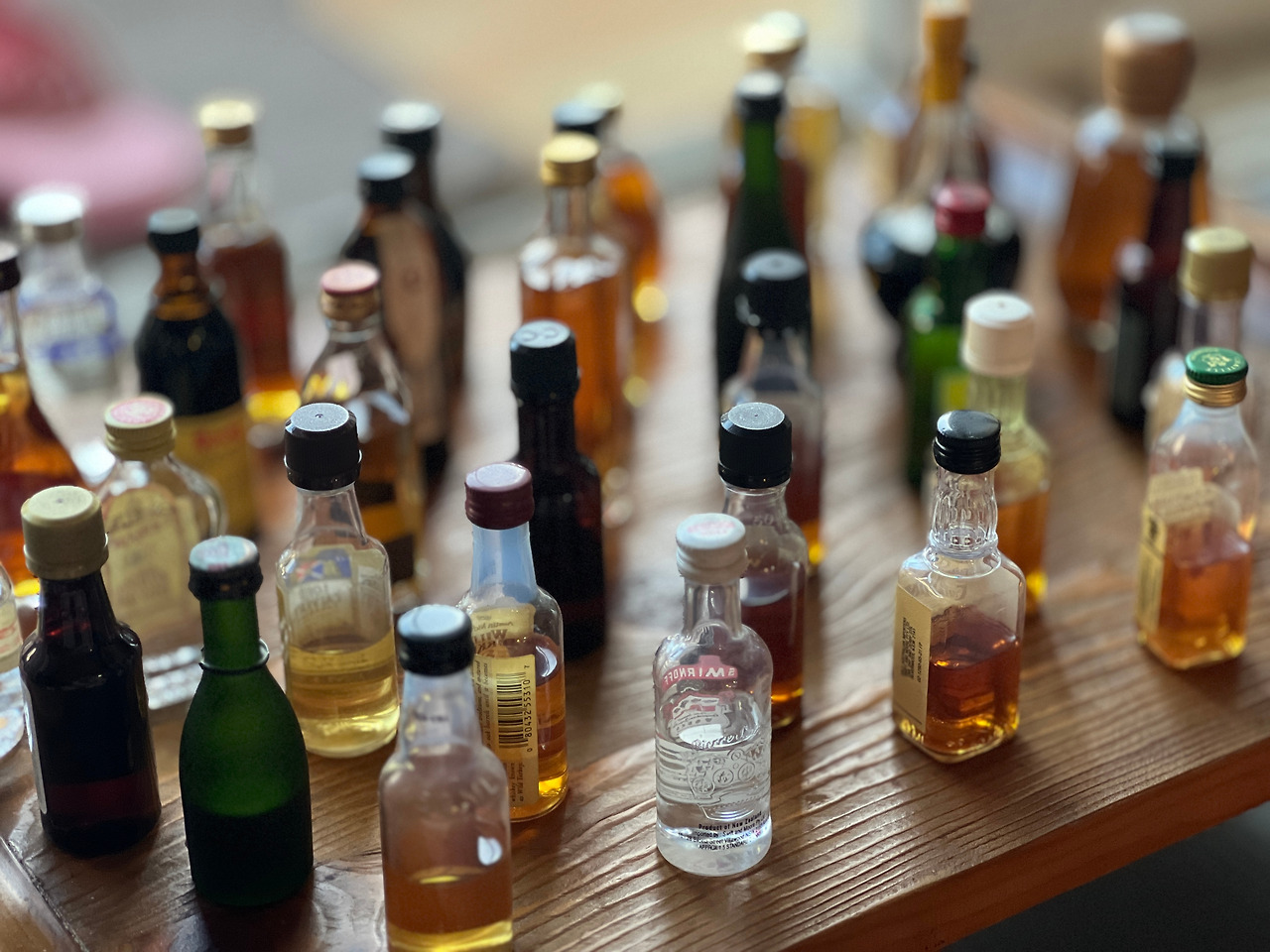 우리 집 진열장 한쪽에는 남편이 출장 때마다 사온 미니 양주들이 쫙 늘어서 있다.