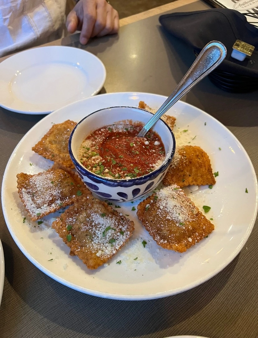 우리 가족도 몇 년 전 세인트루이스에 갔다가 이 프라이드된 라비올리를 처음 먹어봤다. 현지 맛집이라고 소문난 작은 이탈리안 레스토랑이었는데, 겉은 바삭하게 튀겨지고 그 위에는 파마산 치즈 가루와 허브가 솔솔 뿌려져 나왔다. 안에는 고기와 치즈, 향신료로 채워진 만두 같은 속이 들어 있었고, 뜨끈할 때 토마토소스에 푹 찍어 먹는다.