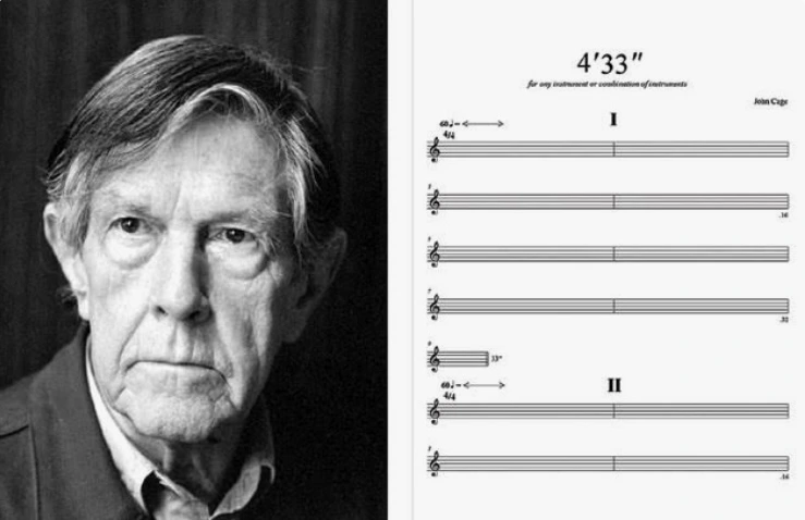 이와 비슷하게, 존 케이지의 '4분 33초'가 떠올랐다. 이 작품에서 연주자는 4분 33초 동안 아무 소리도 내지 않지만, 관객은 사람들의 움직임, 심지어 숨소리까지 주변의 모든 소음을 음악으로 듣는다.