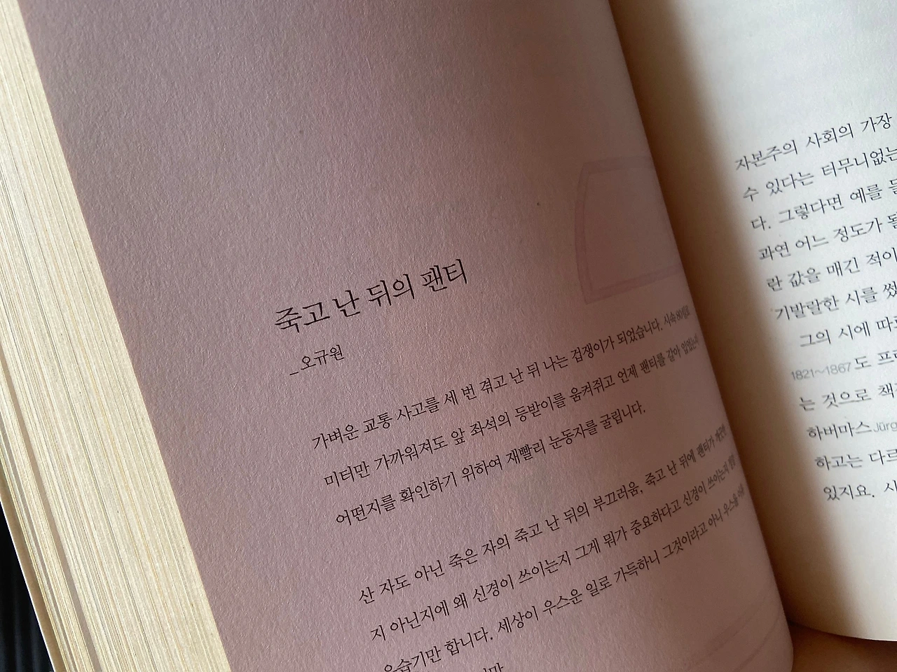 죽음이라는 무거운 주제를 이렇게 가볍게 풀어내다니. 그런데 시를 곱씹을수록 그 웃음 뒤에 숨어 있던 속마음이 슬그머니 내 마음을 건드렸다.