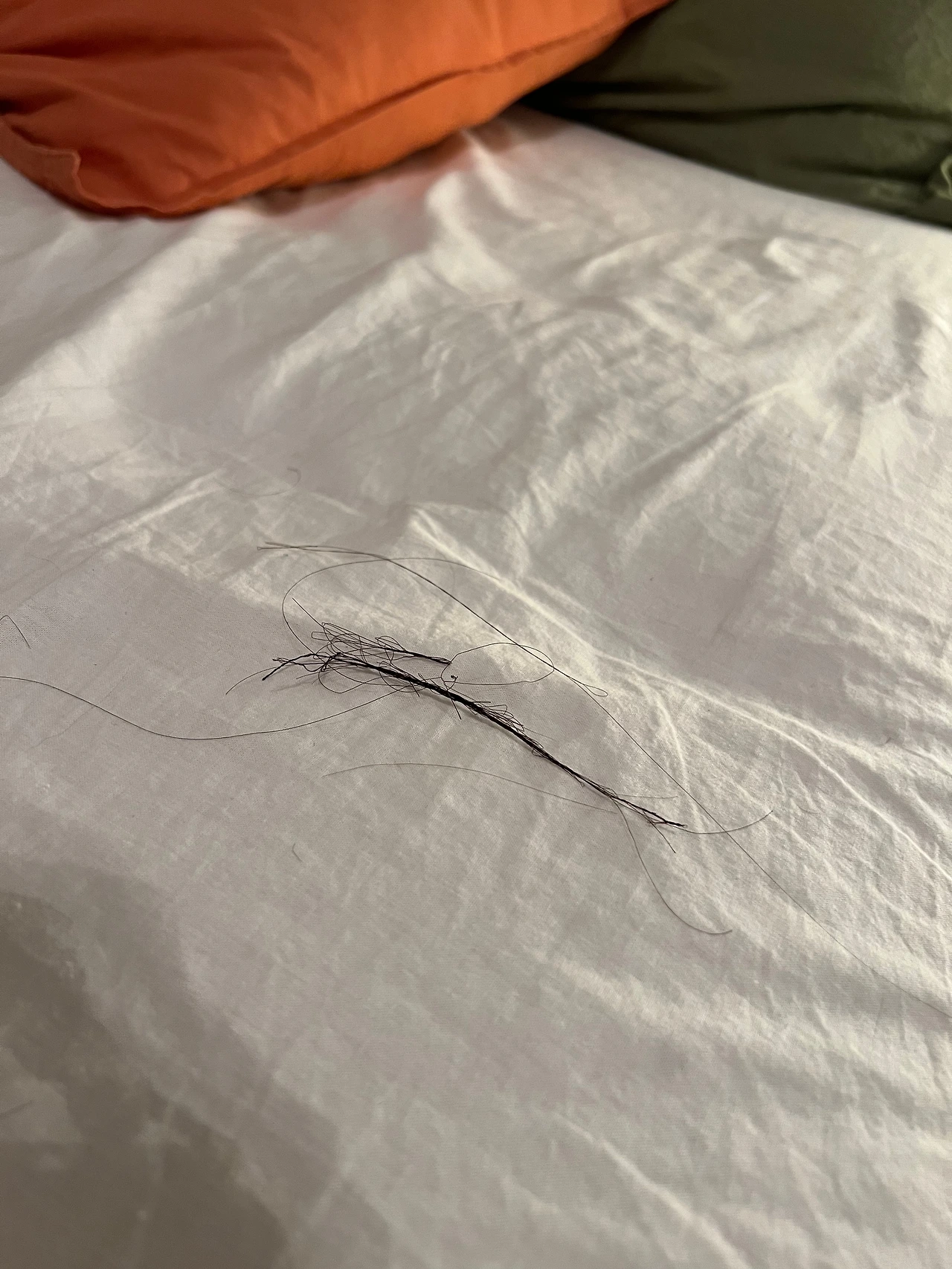 마지막으로, 내게 가장 소중한 TMI. 우리 딸 이야기다. 딸에겐 빠진 머리카락 몇 가닥을 모아 비비 꼬는 이상한 버릇이 있다. 심심하면 손가락으로 꼬아서 꽈배기처럼 만든다.