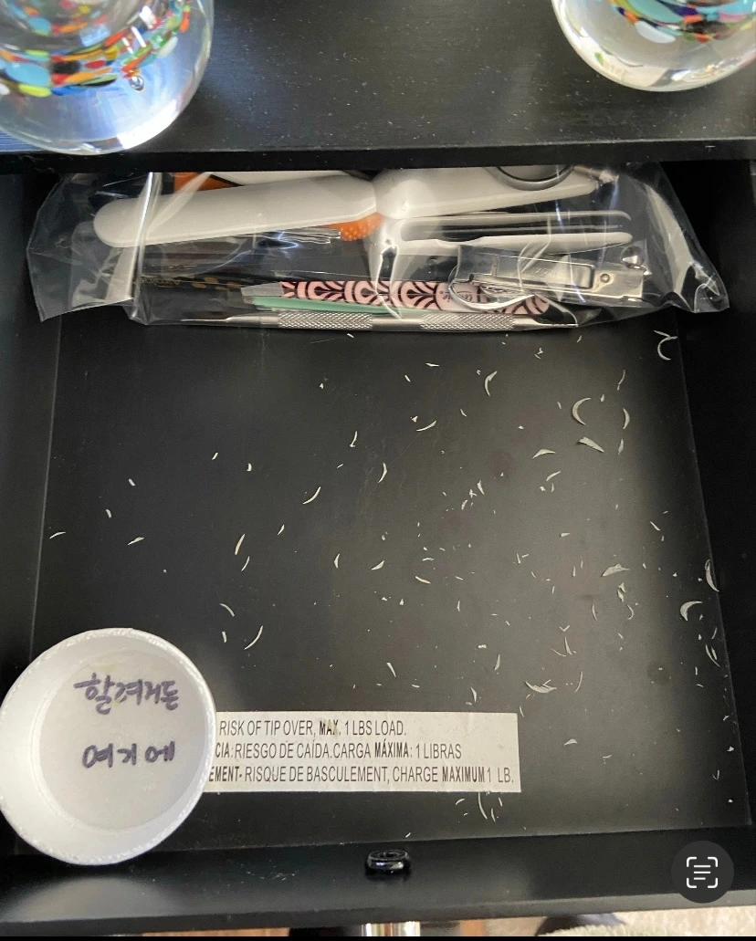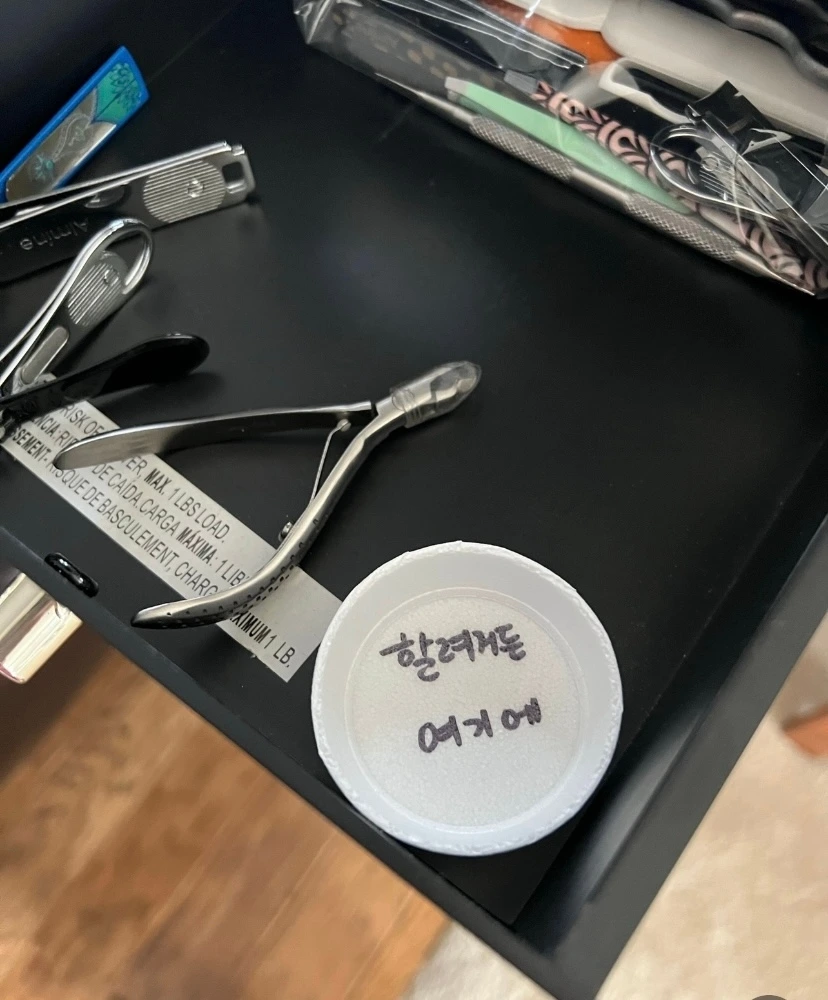 또 있다. 딸은 꼭 손톱깎기가 들어있는 서랍 앞에서 손톱을 깎는다. "거기서 깎으면 서랍에 들어가잖아!"라고 해도 소용없다. 서랍을 열 때마다 보이는 손톱 조각들. ”아, 또 다녀갔구나" 하며 피식 웃는다. 마치 딸이 남긴 작은 선물 같다.