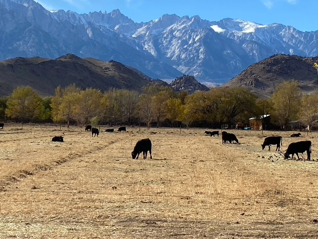 그 길을 달리다 보니 풍경은 또다시 변했다. 도로 양옆으로 알록달록 물든 나무들이 줄지어 서 있었다. 붉은빛, 노란빛, 주황빛이 층층이 물결을 이루며 가을을 수놓았다. 그 사이로 저 멀리 거대한 산맥이 모습을 드러냈다. 넓은 들판에는 검은 소들이 한가롭게 풀을 뜯고 있었고, 그 뒤로는 웅장한 산맥이 거대한 벽처럼 솟아 있었다.