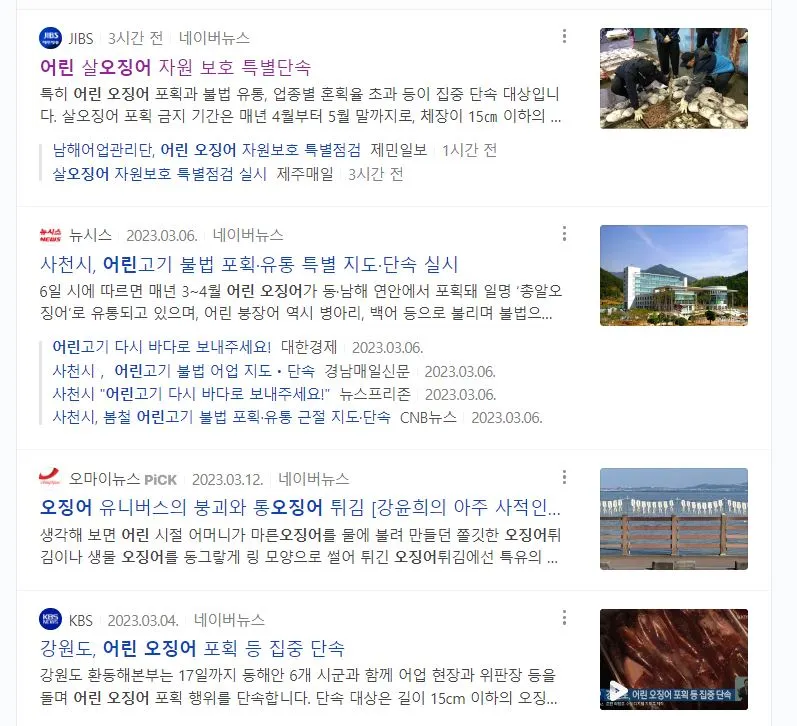 해양수산부는 어린 오징어 생산 및 유통 근절을 위해 금지체장을 규정하고 감시하고 있으나 여전히 포털에서 총알오징어를 검색하면 쉽게 구매할 수 있는 것이 현실이다.
