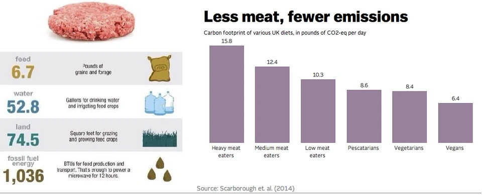 아무래도 환경 관련 공부를 하고 있다 보니 수업 시간에 육고기 생산의 환경적 영향에 대한 이야기를 많이 듣게 된다. 소고기, 돼지고기, 닭고기, 유제품 생산과정에 있어서의 환경적인 영향력에 대해 공부하다 보면 생각이 많아지는 건 어쩔 수가 없다. 세계 토지 사용과 그 변화에 대해 수업을 들었을 때를 예로 들어보면. 농경지 사용의 여러 종류를 보면, 가축들에게 먹이기 위해 작물을 심는 토지들이 있고 사람들이 직접 먹기 위한 작물을 심는 토지들이 있다. 여기서 100이라는 양의 곡물을 우리가 직접 먹으면 100칼로리를 얻을 수 있다. 하지만 이 100이라는 양의 곡물을 소에게 먹이면 우리는 12칼로리만큼의 소고기만 얻을 수 있다. 이 효율은 소고기, 돼지고기, 닭고기 순으로 높아진다. 한마디로 소보다는 돼지를, 돼지보다는 닭을, 닭보다는 채소를 먹는 것이 좀 더 효율적으로 땅을 사용하는 방법이 되는 것이다. 이런 공부를 매일 하다 보면 환경에 가장 적은 영향을 주는 방법은 채식이라는 생각을 떨칠 수 없다. 또한 수업 시간에 배우는 것 외에도 스웨덴에서는 육식의 환경적인 영향에 대해 이야기하고 토론하는 세미나나 모임 자리가 많기 때문에 학교 안에서, 밖에서 지속적으로 이 문제에 대해 생각해볼 수밖에 없다. 동물 보호를 위해 채식을 하는 사람들도 많지만 내 경우에는 아무래도 육식의 환경적인 영향에 대해 공부하고 토론하고 또 스스로 생각하다 보니 채식을 하게 되었다.