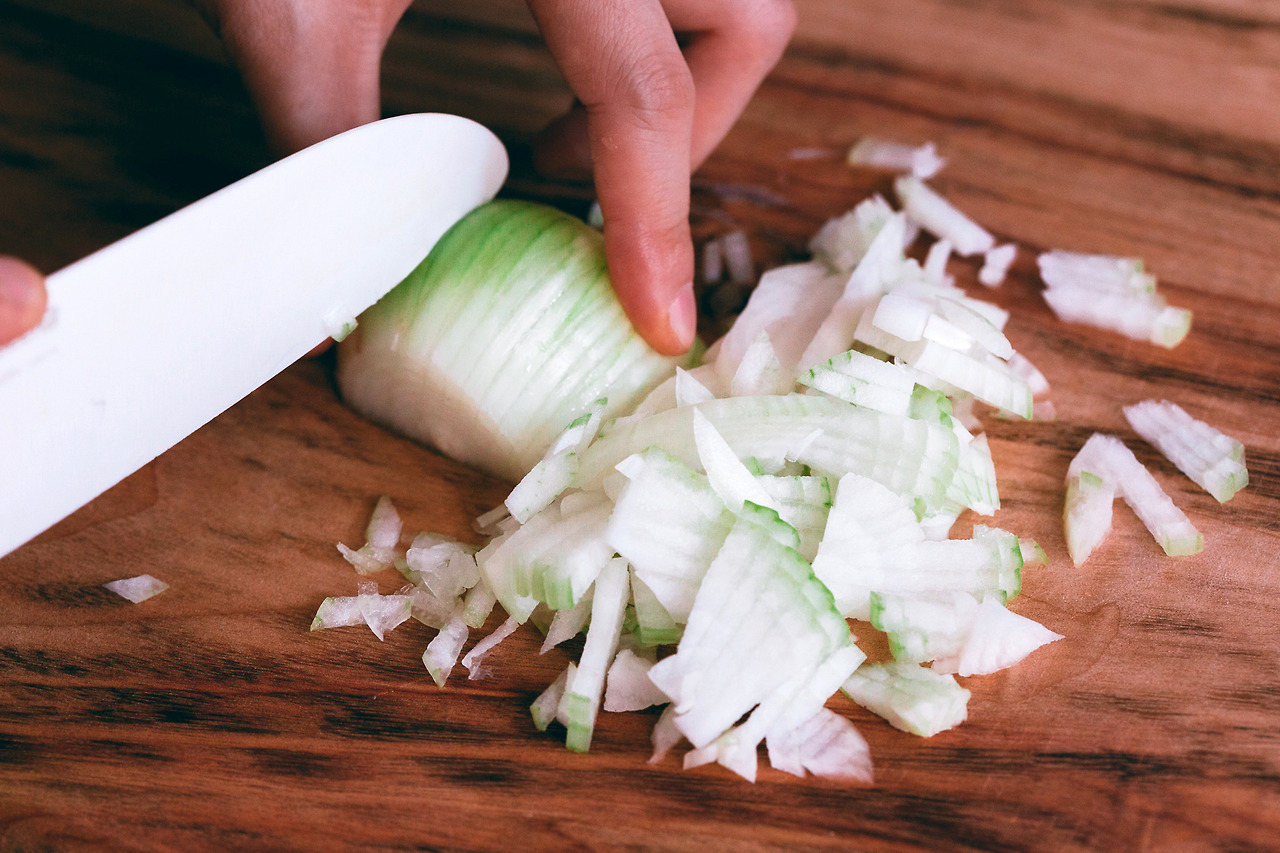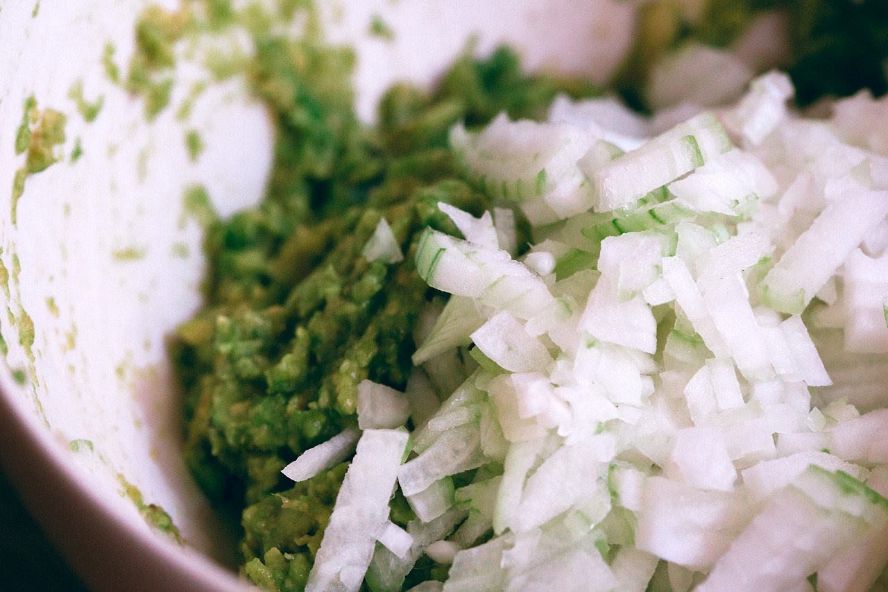 - 다진 양파를 으깬 아보카도와 잘 섞어 준다.