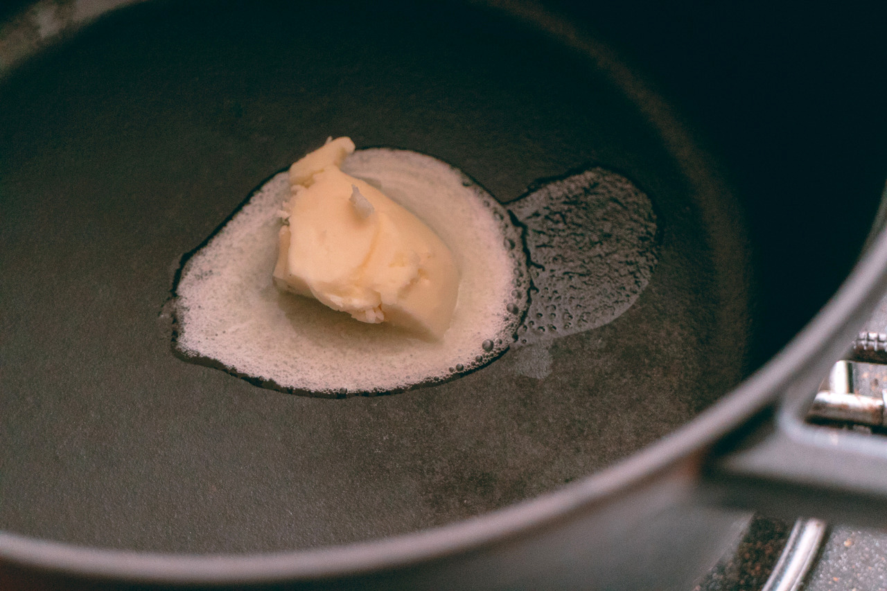 약불로 예열된 냄비 속의 버터. 언제나 좋은 냄새.