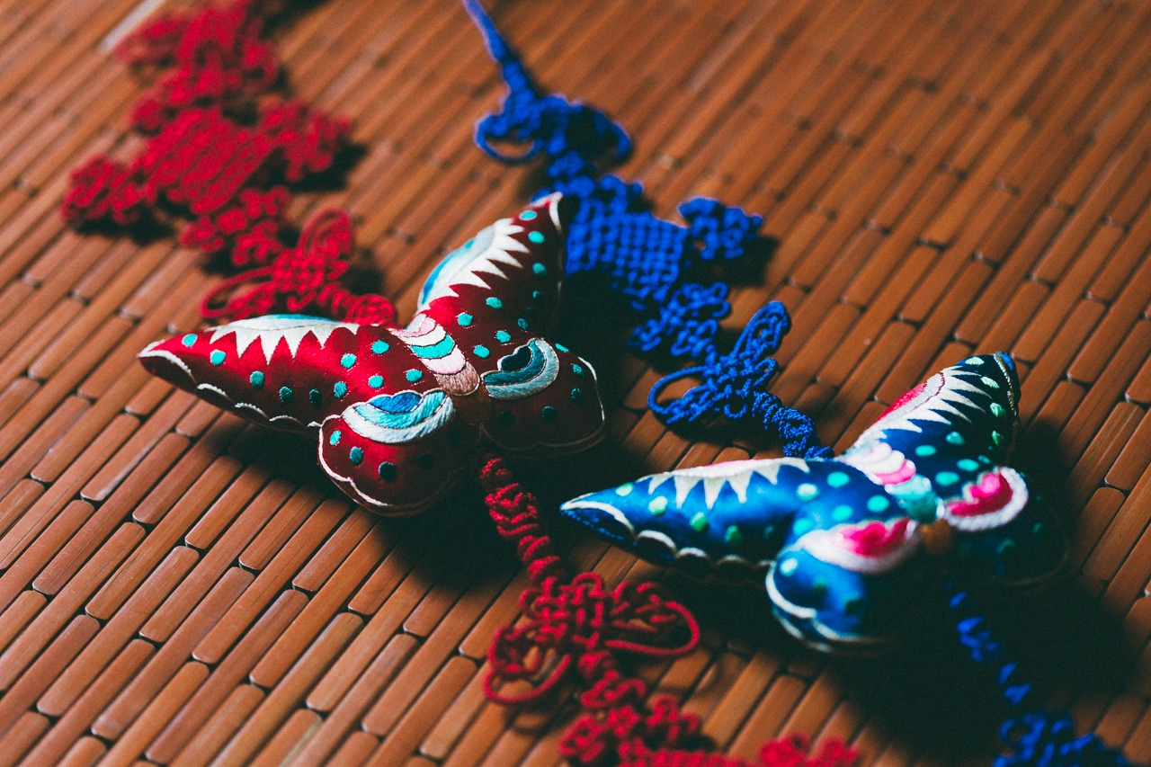 소품이 하나둘씩 늘어나면서 단출하게 준비하려던 초심에 금이 가기 시작했다. 혼례 준비가 막바지에 이를 무렵 인사동을 거닐다 나비매듭이 눈에 띄고 만 것이다. 나비매듭은 혼례를 치른 첫날밤, 신랑 신부가 합방하는 문 앞에 걸어 장식하는 일종의 표식이라고 한다. 전통 방식에 천착했다기보다, 나비 아래로 풍성하게 떨어지는 술 장식이 아름다웠다.