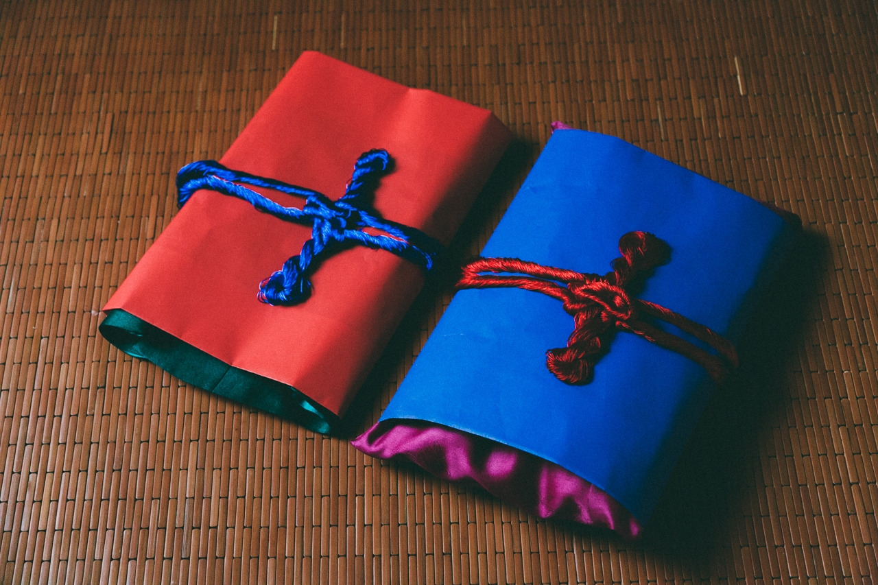 신랑의 집안에서 신부의 집으로 보내는 편지다. 귀한 딸을 베필로 주셔서 감사하다는 마음을 담아 집안의 어른이 손수 글자를 써서 보냈다. 한자 문화권의 거대하고도 유구한 전통이 동시대에 과연 유효한 것일까? 그 오래전 나의 큰아버지들과 아버지는 할아버지로부터 혼서지를 받아 큰어머니들과 어머니의 집으로 향했을 것이다. 손수 먹을 갈아 꼭꼭 눌러쓴 글자에 감도는 쿰쿰한 먹향이 양가의 결합을 앞둔 어느 날 어색한 정적을 가로질렀을 것이다. 현대식 혼례에서는 한복집 대필 서비스를 받았다.