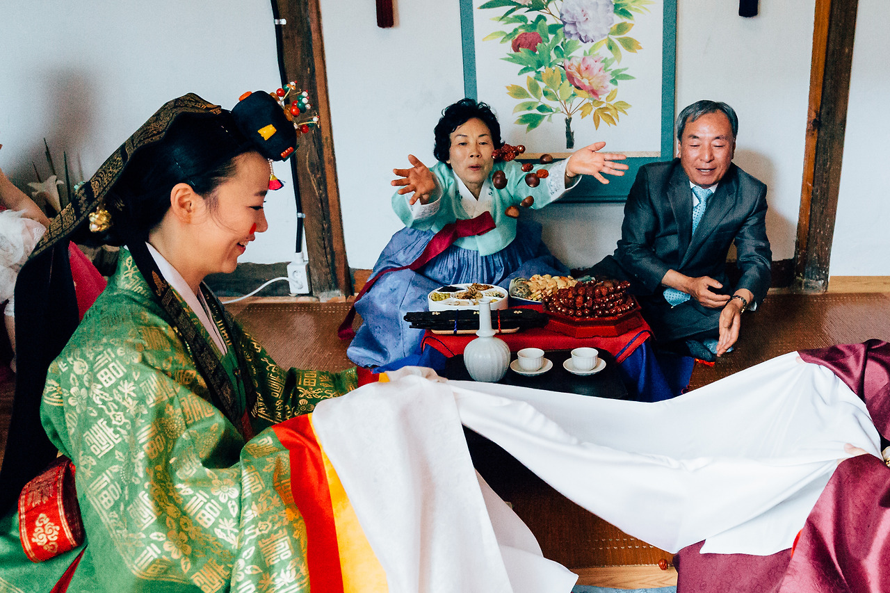 대례상을 사이에 두고 혼례를 치르는 동안 꼬마 손님들이 프레임 안에 수시로 난입했고, 사방의 문을 열어젖혔음에도 뙤약볕만 내리쬘 뿐 미풍조차 불어오지 않아 무더위가 엄습했다. 완연한 여름이 내려 앉기 전인 하지 무렵이었으나 이례적으로 폭염주의보가 발효된 초여름이었다. 머릿속에 되뇌던 혼례 절차는 뒤섞인 채 어느 순간 백지상태가 되어버렸고, 다행인지 불행인지 내 기억 속엔 그날의 기억이 없다.