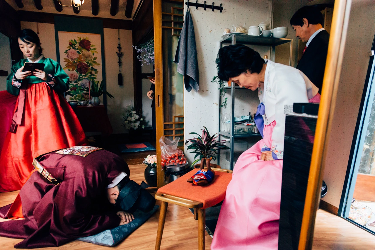 세 시간 남짓 눈을 붙이고 맞이한 혼례 당일, 나는 반 수면 상태로 동네 미용실에 들렀다. 몇 시간 뒤 결혼을 치른다는 이야기는 굳이 꺼내지 않았다. 곱게 단장한 얼굴과 쪽진 머리를 하고서 집으로 돌아오는 길, 늘 익숙했던 거리가 그때만큼 낯설게 느껴졌던 적은 없다.