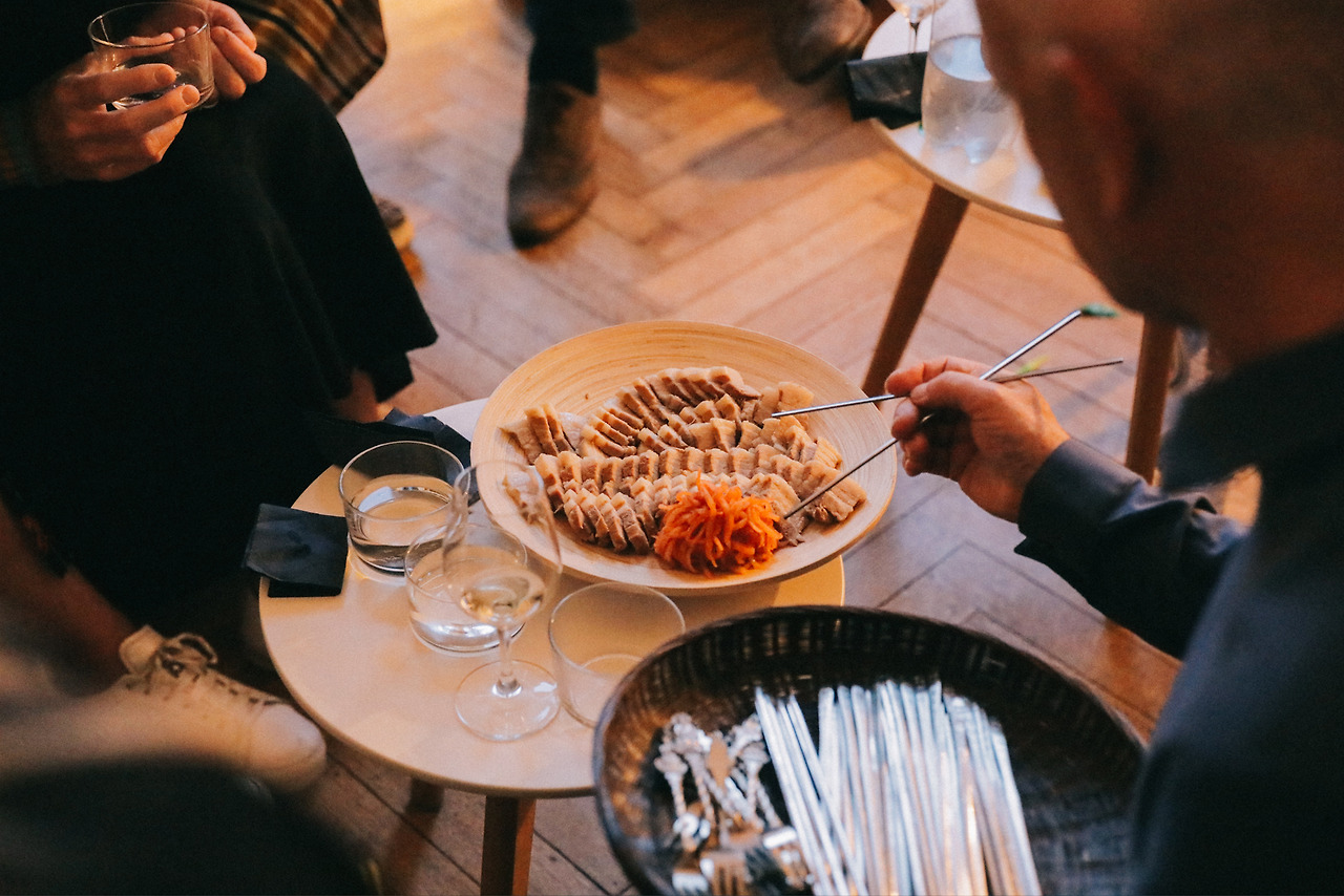 파티는 오후 아홉 시에 시작되었다. 여름의 태양은 저무는 법을 잊었다. 오렌지빛으로 물든 석양이 땅 아래 흙을 파고들만치 누워야 겨우 저녁상을 차리고 사람들은 그제야 식탁으로 모여든다. 사람들이 모여 일상을 나눈다. 이곳 사람들은 풍채가 좋다. 높은 층고의 공간감이 밀도를 상쇄시킨다.
