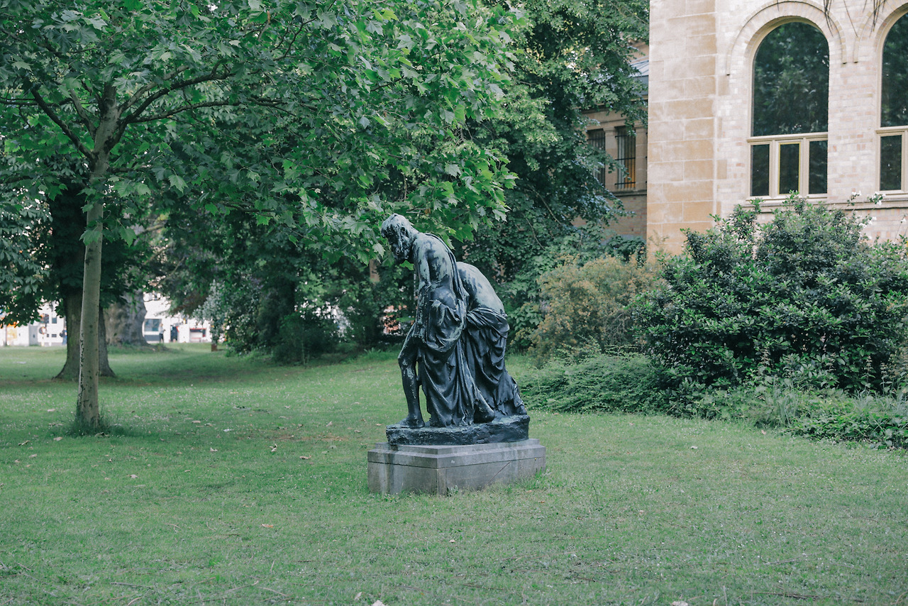 참회의 형벌이 내려앉은 등허리는 땅속으로 꺼질 듯 구부정하다. 브뤼허 출신의 조각가 줄스 라게 (Jules Lagae , 1862-1931)의 대표작, <참회자 Boetelingen, 1892>