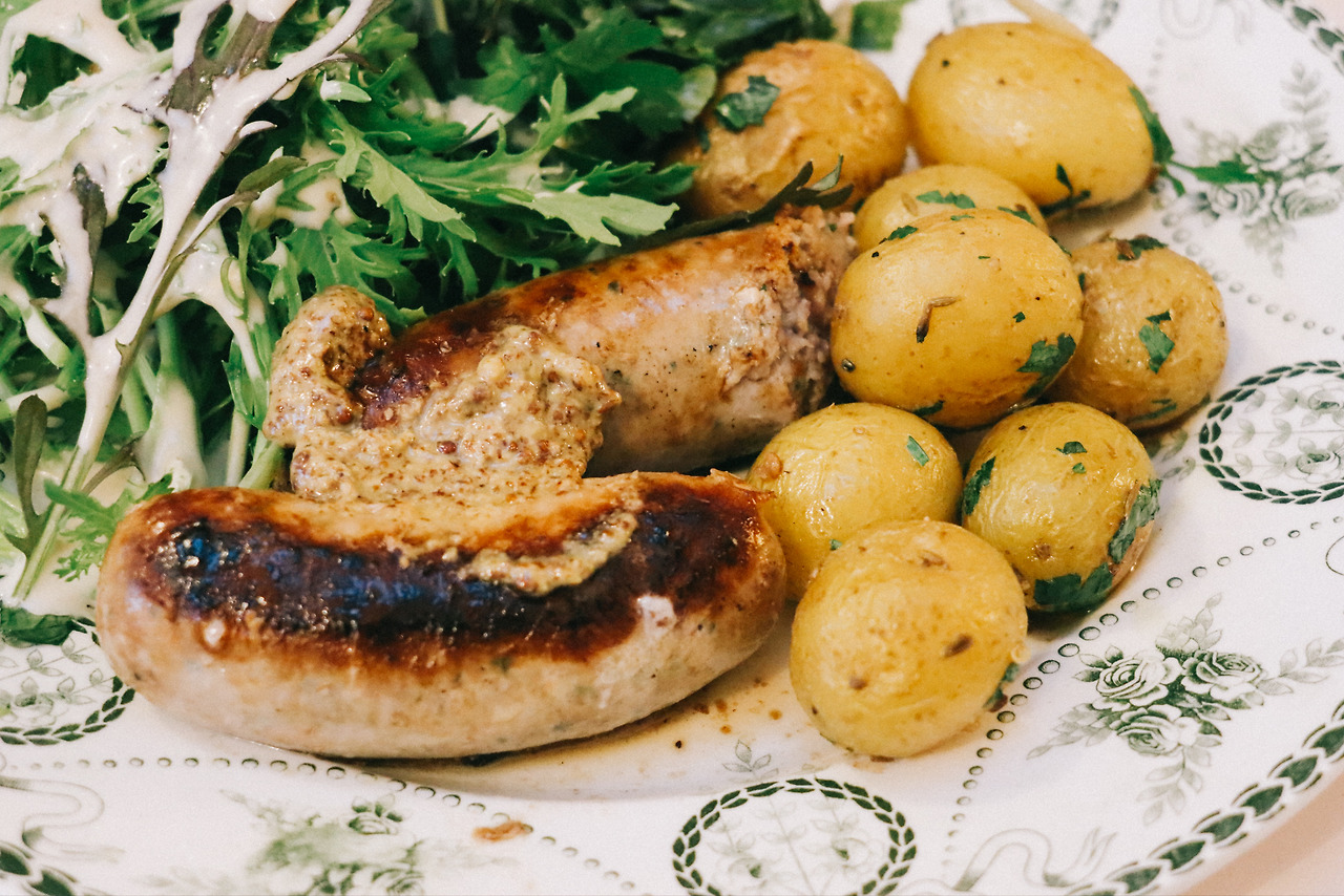 버터에 볶은 파슬리와 커민은 감자의 풍미를 돋우고 소시지는 센 불에서 겉이 타들어 갈 만큼 굽는다. 뒤뜰에서 갓 따온 유월의 푸성귀는 휘저은 홀스래디시 드레싱에 성큼성큼 버무린다.