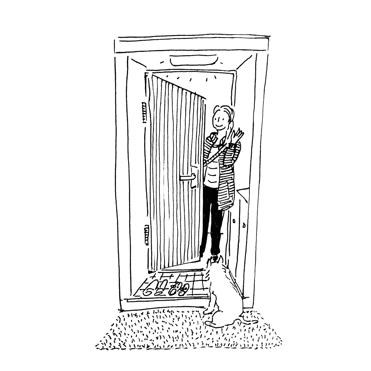 월요일 아침, 현관문 앞에서.