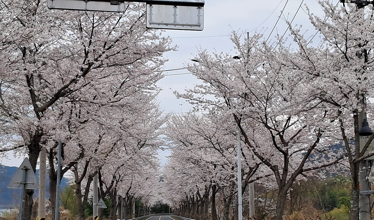 봄비에 젖는 벚꽃 가로수길~~♡
