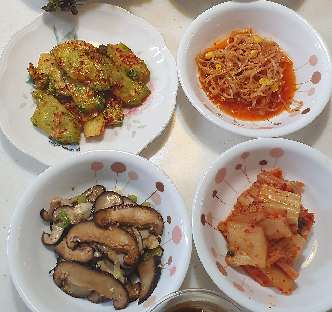 저녁에 해놓은 국과 밑반찬으로 아침상을 차리고