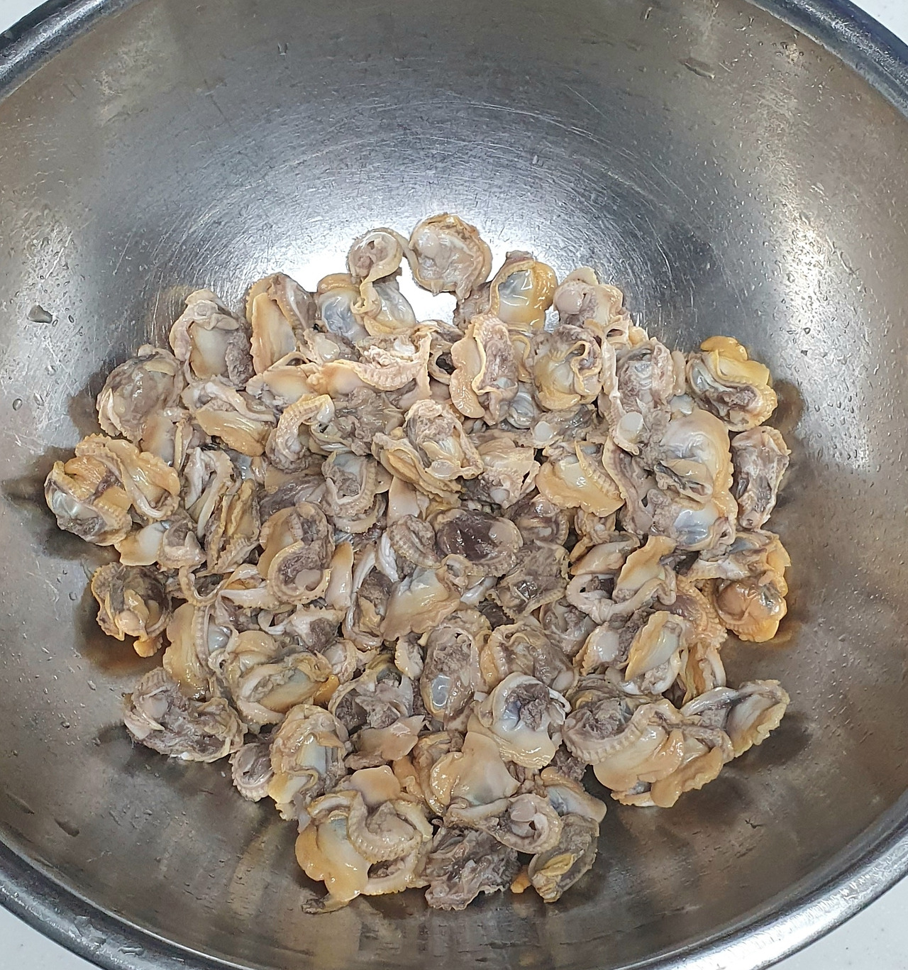 다시 박박 문질러 씻고 끓는 물에 입을 벌린 꼬막이