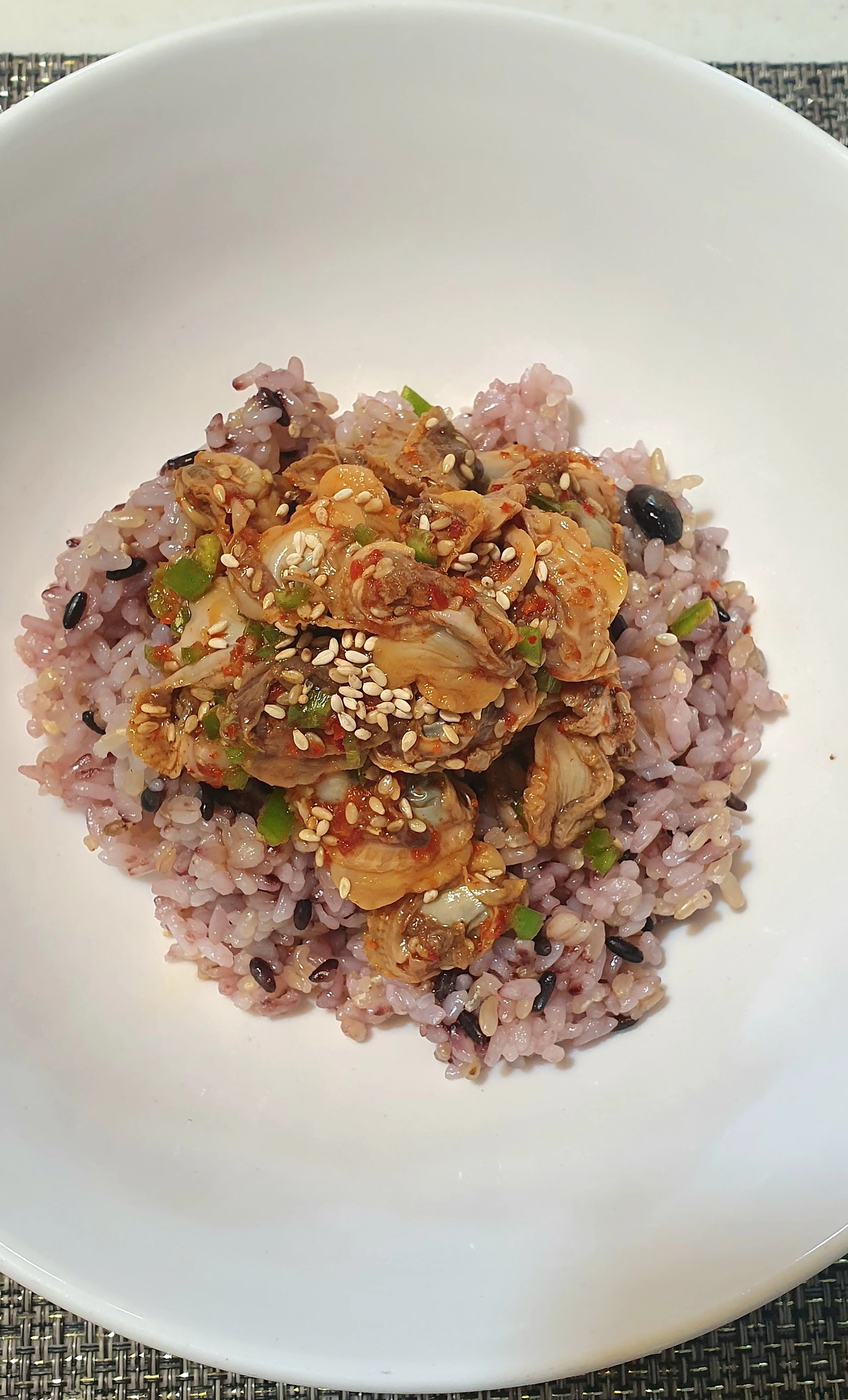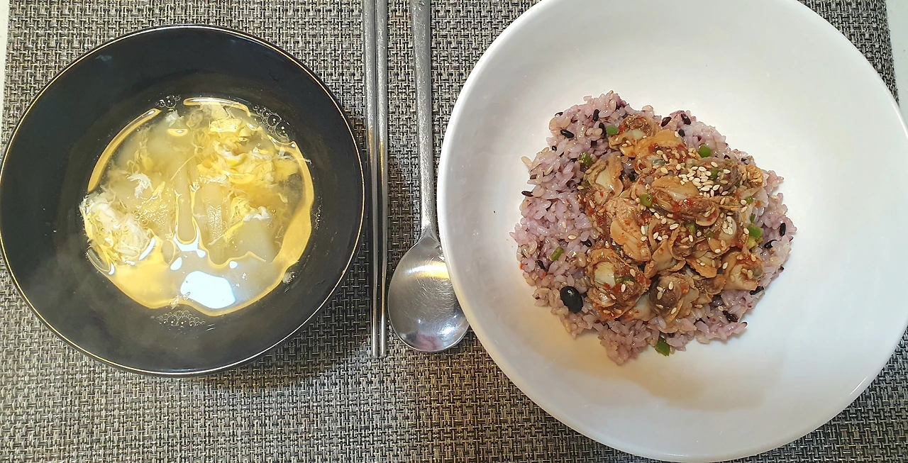 저녁에 들어온 남편이 꼬막비빔밥을 먹고