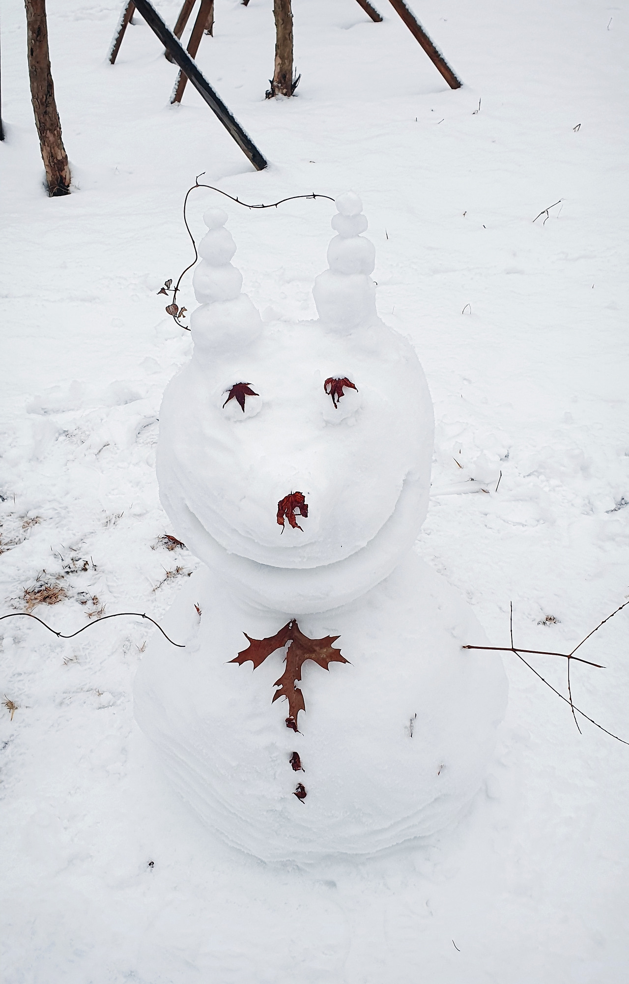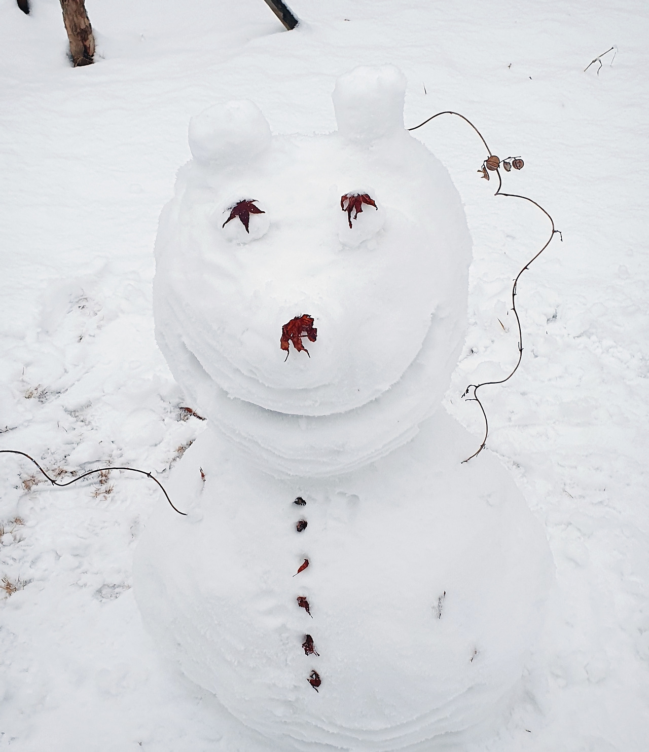 눈사람을 장식해야 했다. 하지만 예쁘게 만들 장식도구가 없었다. 남편은 떨어진 단풍잎을 몇 개 가져오고