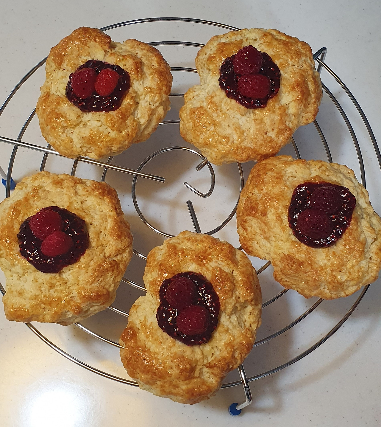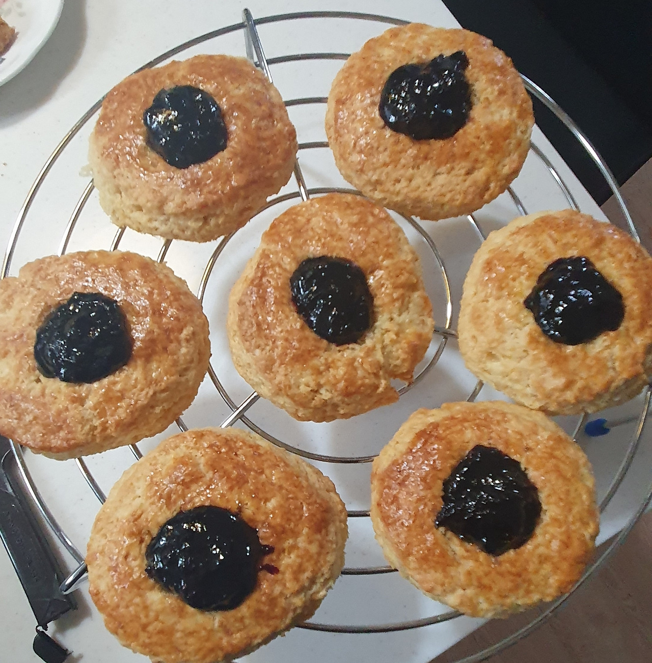 나는 내가 만든 스콘을 나누고 있다.