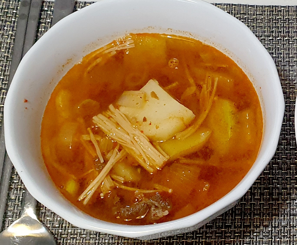 쌀뜨물에 표고버섯에서 뗀 꼭지를 넣고 동전육수도 하나 넣었다. 물이 끓으면 감자 양파 호박을 썰어 넣고, 된장을 풀었다. 쌈장도 한 스푼 넣었다. 남편은 고기 넣은 된장국이 좋다기에 냉동실에 있던 샤브샤브 소고기를 한 움큼 집어넣었다. 마지막으로 팽이버섯과 파 마늘을 넣고