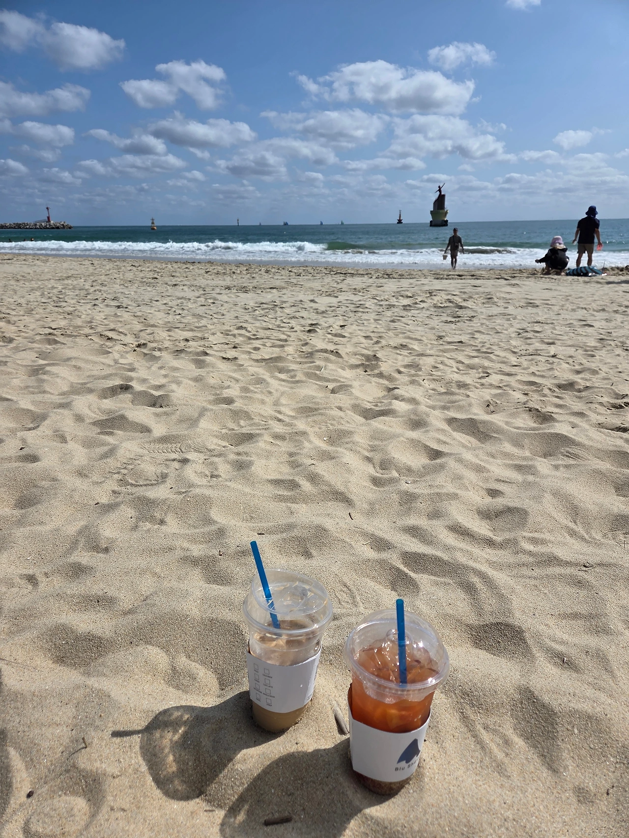 바닷가 옆에서는 서너 살 먹은 아이와 열심히 모래놀이를 하는 아빠가 있었다.