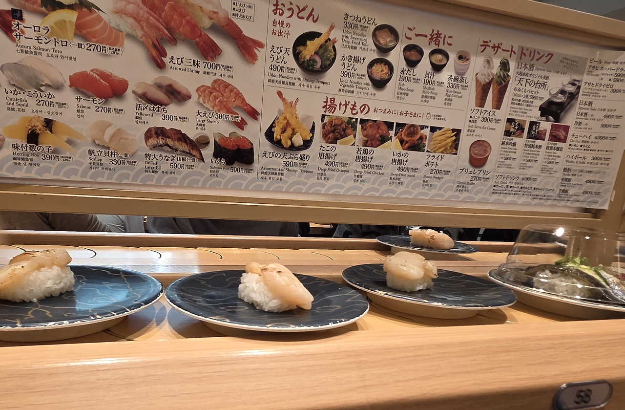 예전의 기억을 더듬어 우리는 회전초밥집 앞에