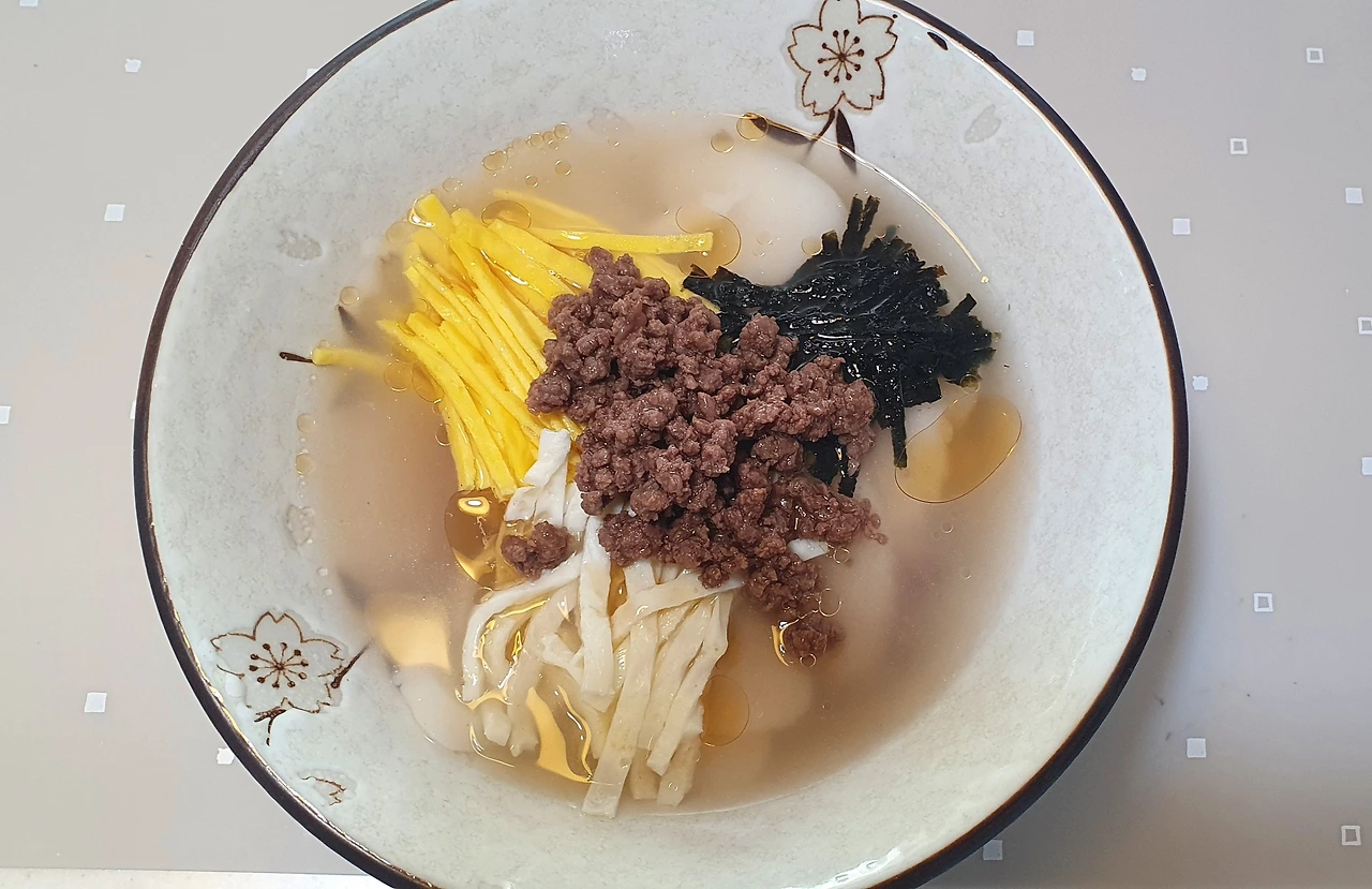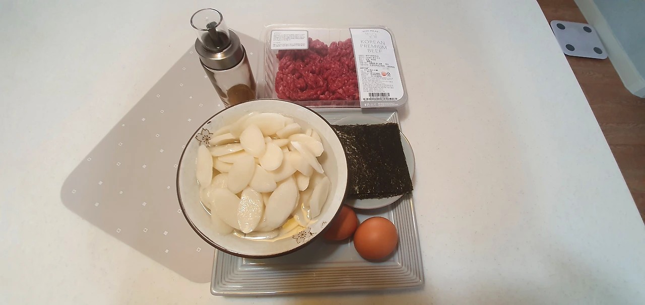 재료;떡국떡, 소고기, 김, 달걀, 참기름