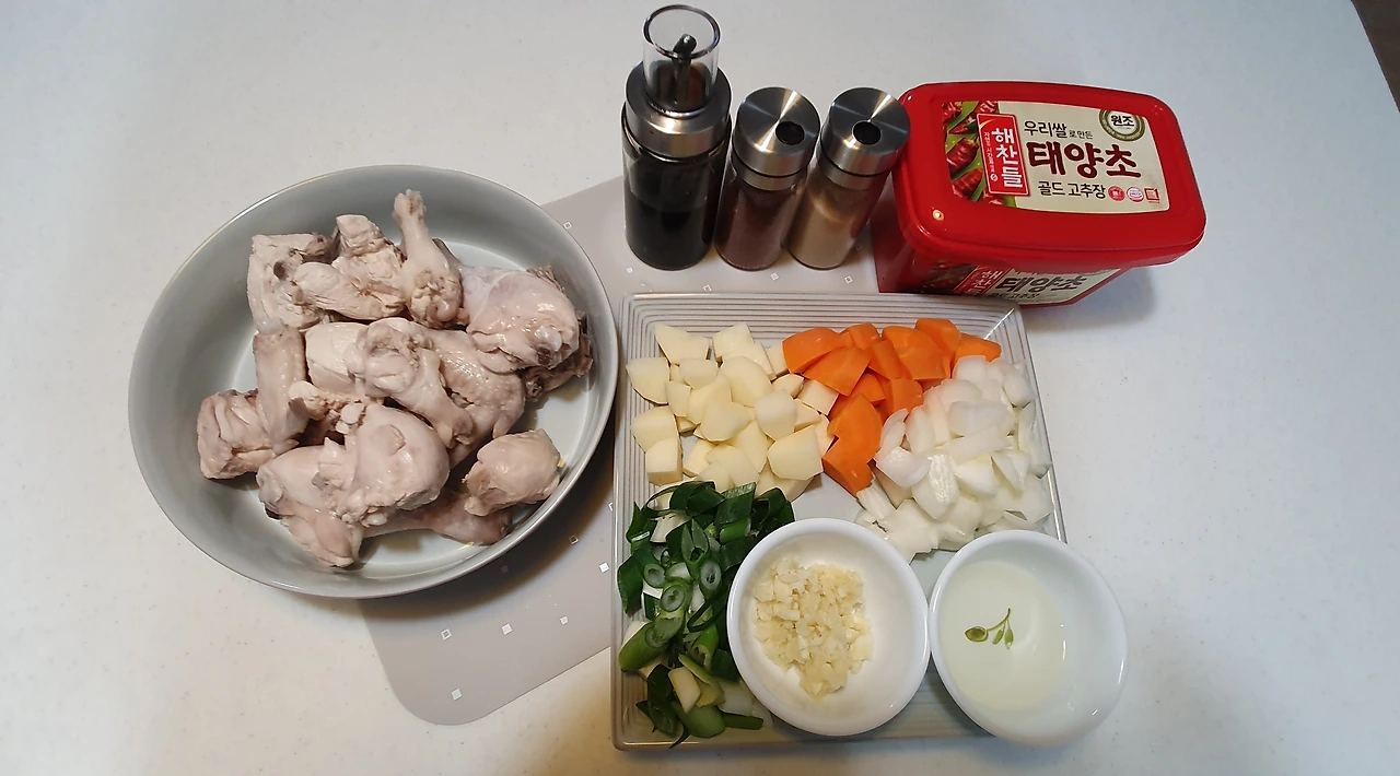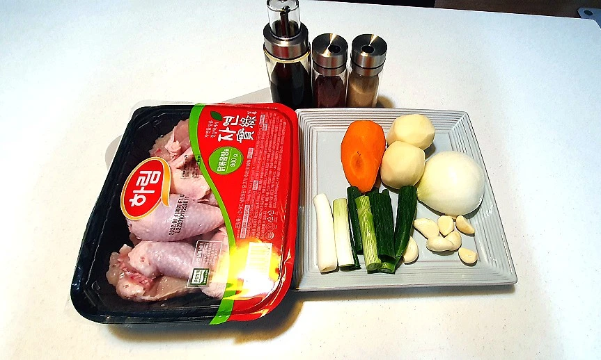 닭볶음탕용 닭, 감자, 당근, 양파, 파, 마늘
