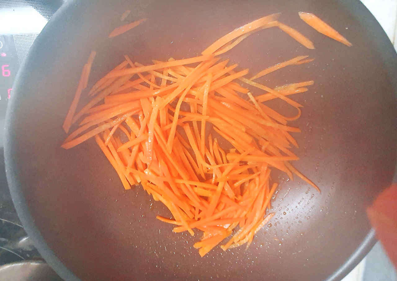 - 모든 야채는 채 썰어 기름을 적게 두르고