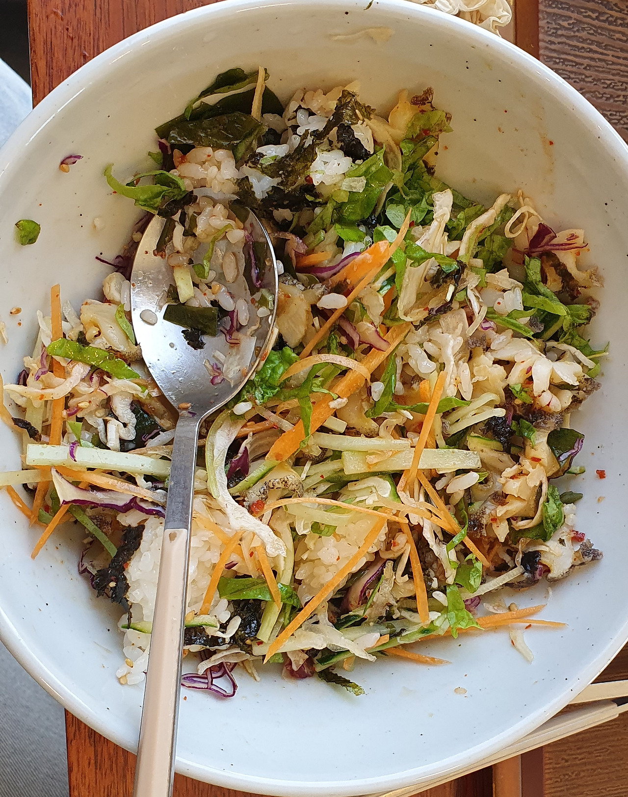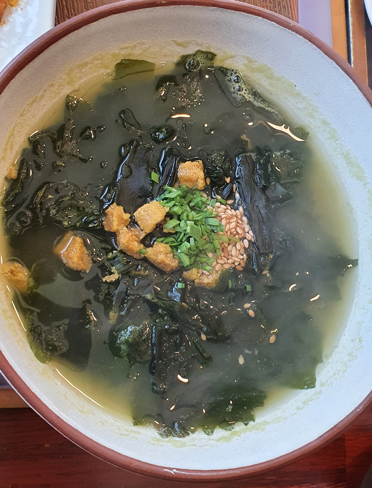 1시간의 여정을 마치고 우리는 늦은 아침을 먹으러 갔다. 메뉴는 성게 미역국과 전복 비빔밥이다.