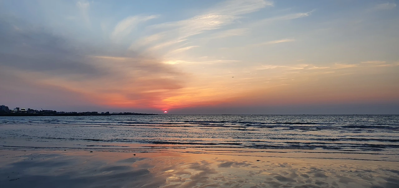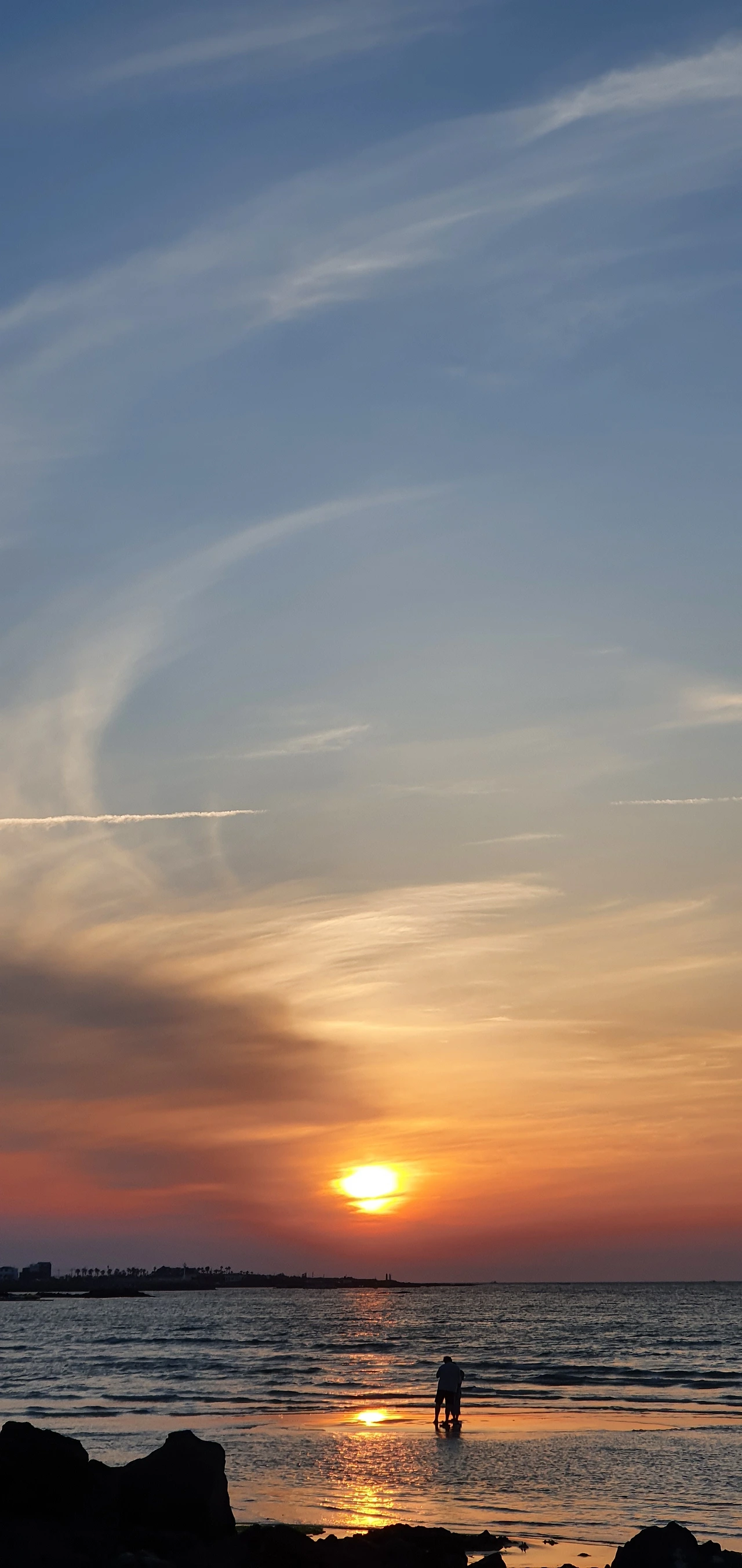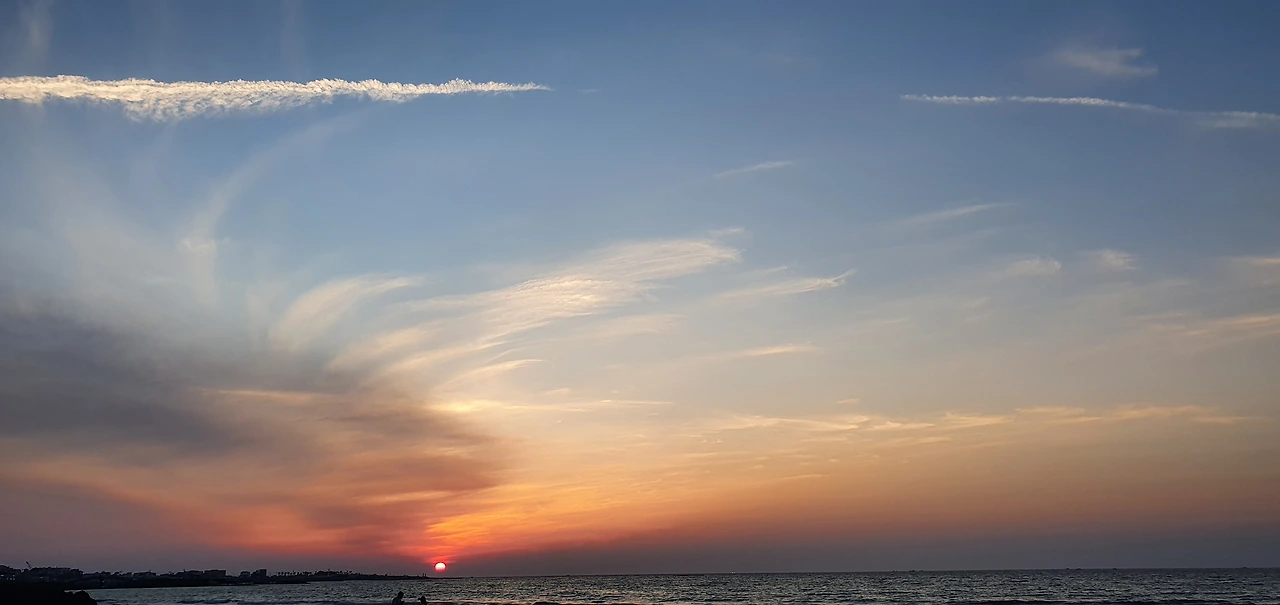 바다 위로 잠시 얼굴을 내비치고 바다 물결을 서서히 붉은빛으로 물들이고 주변의 공기를 다 빨려 들어가게 하는 해의 붉은 기운은 오로라를 보는 것같았다.